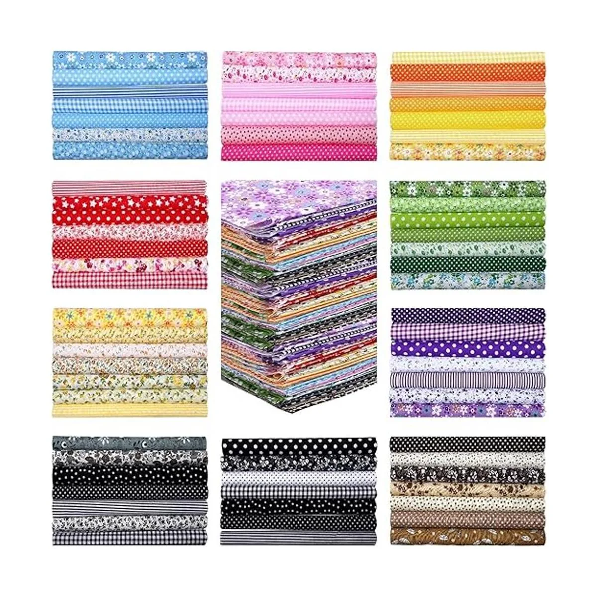 Varios estilos: nuestros tejidos de algodón están impresos con diferentes patrones, en colores brillantes, como rayas, flores, patrones de estrellas, etc., exquisitos y hermosos; estos bonitos elementos hacen que los tejidos sean adecuados para hacer diferentes tipos de manualidades de costura