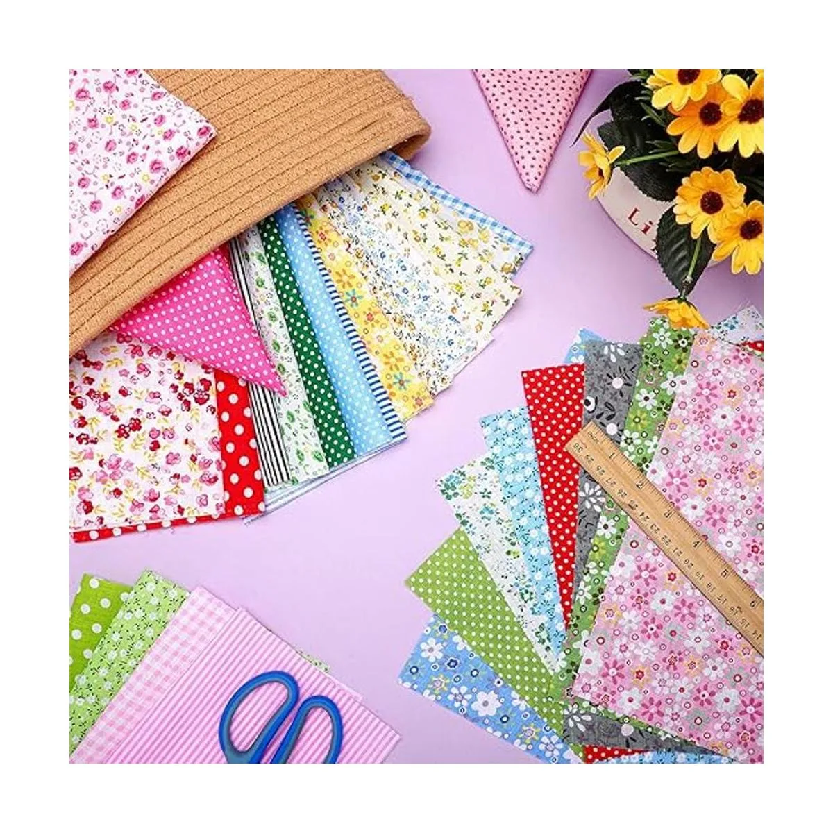 200 piezas de tela de algodón a granel de 10 x 10 pulgadas, paquetes de tela de retazos cuadrados multicolor para manualidades, accesorios hechos a mano flor