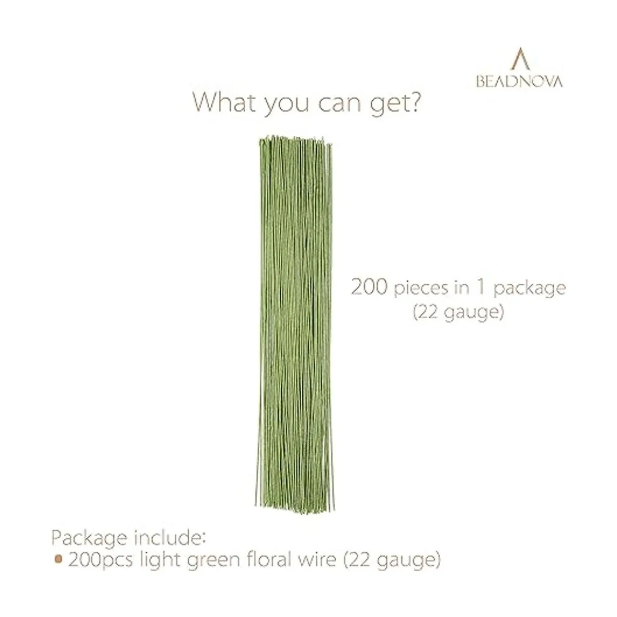 200 tallos de flores de calibre 22 de Beadnova con alambre verde para flores arreglos floristería DIY ramo verde claro, 200 piezas