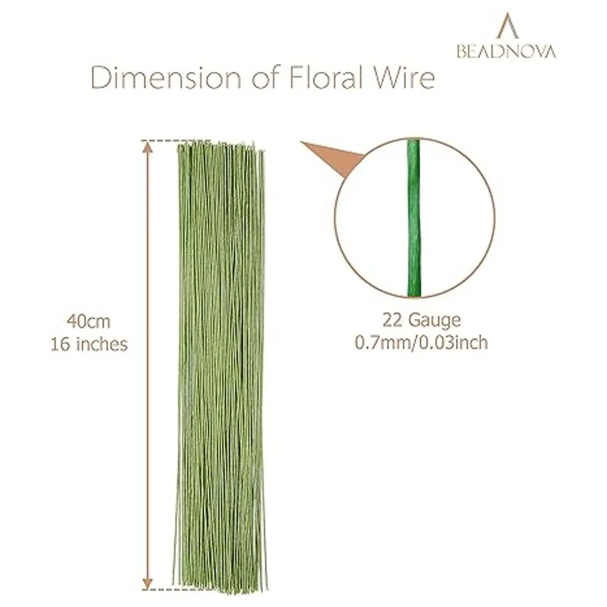 Especificaciones de alambre floral: alambre floral de 15.7 in de largo, alambre de calibre 22 en verde claro, aproximadamente 0.028 in de diámetro. 200 piezas de alambre en un paquete.