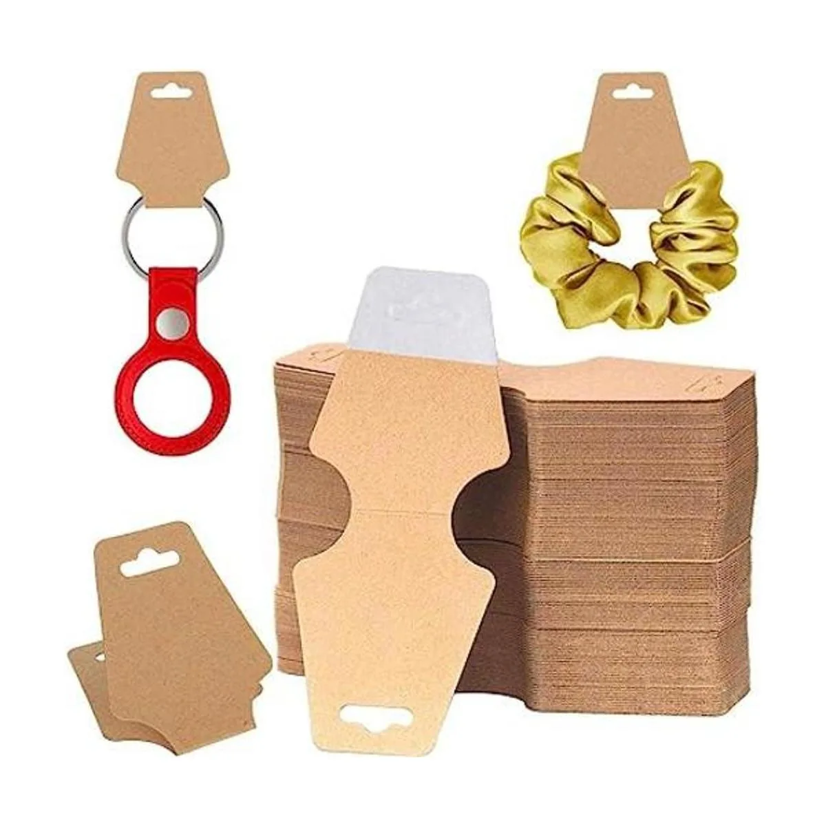 200 tarjetas de exhibición de llaveros con adhesivo, collar, pulsera, joyería, colgante, papel kraft en blanco, etiquetas de embalaje para vender