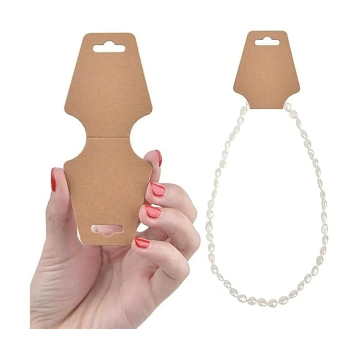 Fácil de colgar: estas tarjetas económicas de exhibición de collares vienen con agujeros perforados, lo que hace que sea conveniente colgar en el estante de exhibición, estas tarjetas de papel kraft en blanco escriben suavemente, que tienen suficiente espacio para escribir o imprimir tu propia información como logotipo, marca y precio en las tarjetas de exhibición de joyas impresas para hacer que tus productos se vean más profesionales
