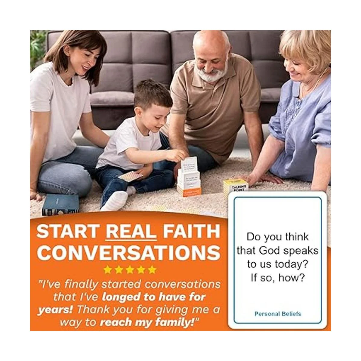 Fomenta el crecimiento: la baraja de juego contiene 4 temas atractivos: Your Faith Journey, World Around Us, Personal Beliefs y Bible Truths. Cada tarjeta te guiará de forma segura sobre temas de los que la mayoría de la gente quiere hablar, pero puede que no sepa cómo entrar. Cuidadosamente diseñado en un lenguaje claro y simple para que todos puedan unirse. Aprende algo nuevo sobre ti y los demás con conversaciones que buscan el alma y provocan pensamientos sobre lo que realmente importa ahora y en la eternidad