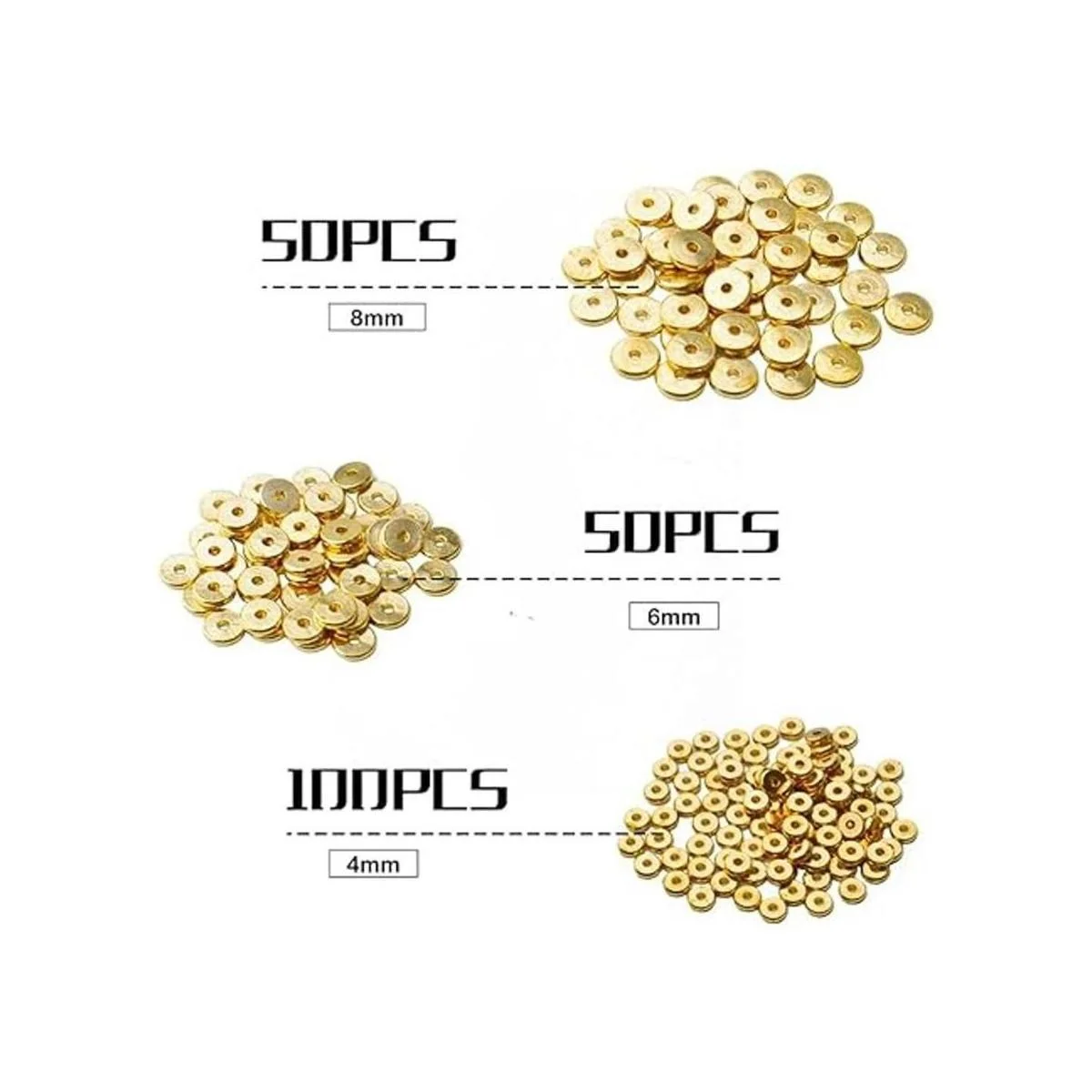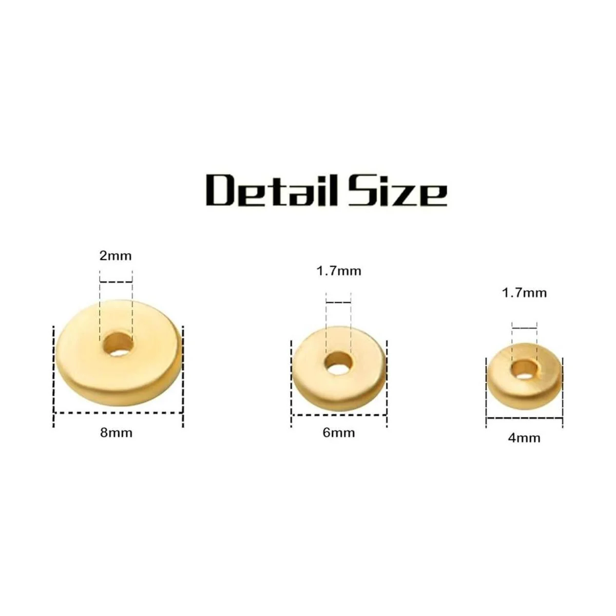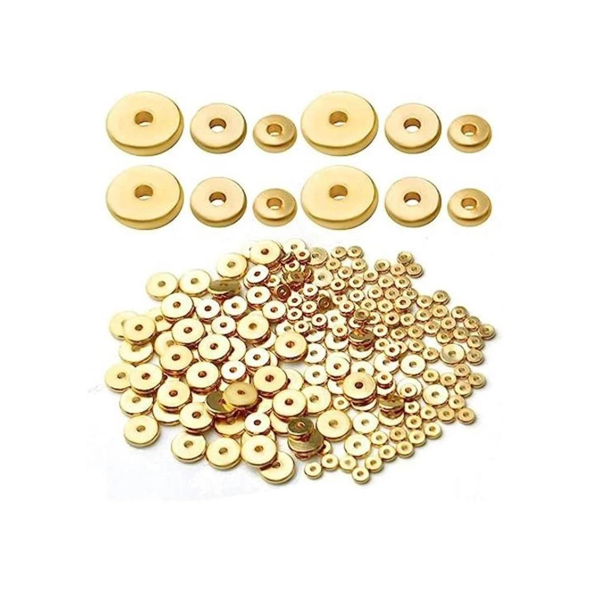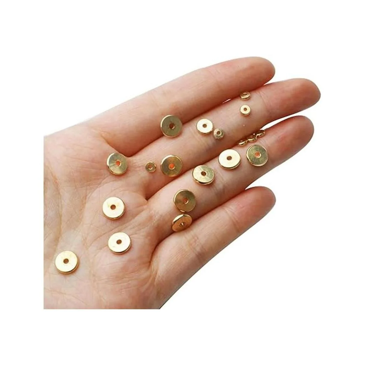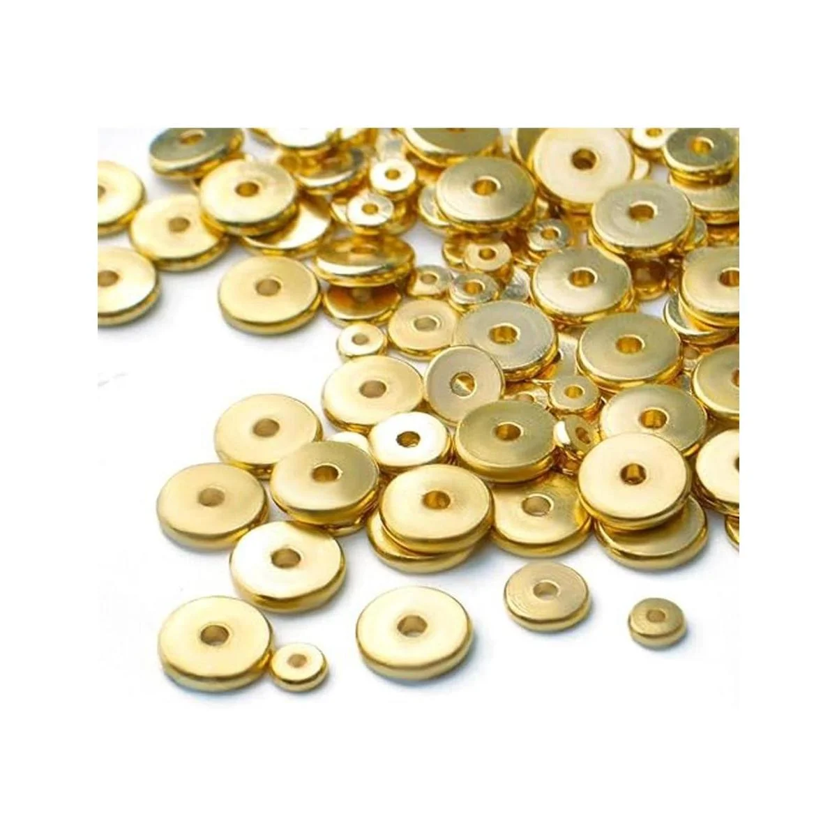 Cuentas espaciadoras de joyas: estas cuentas de oro están diseñadas con forma redonda plana, simple pero elegante. Puedes utilizarlas entre cuentas más grandes, lo que puede añadir un poco de brillo extra a tus diseños.