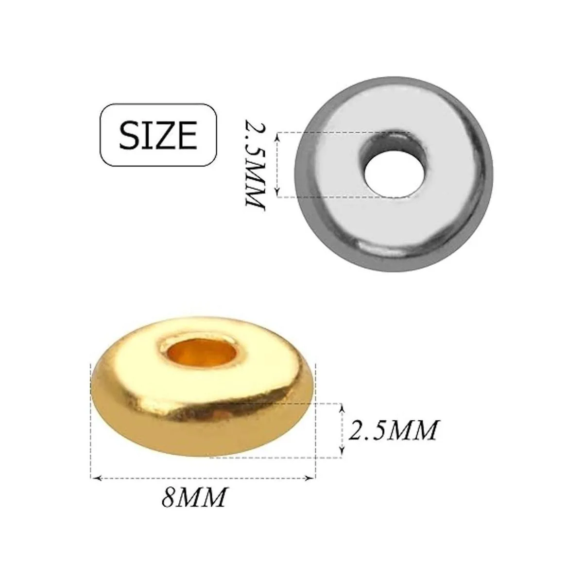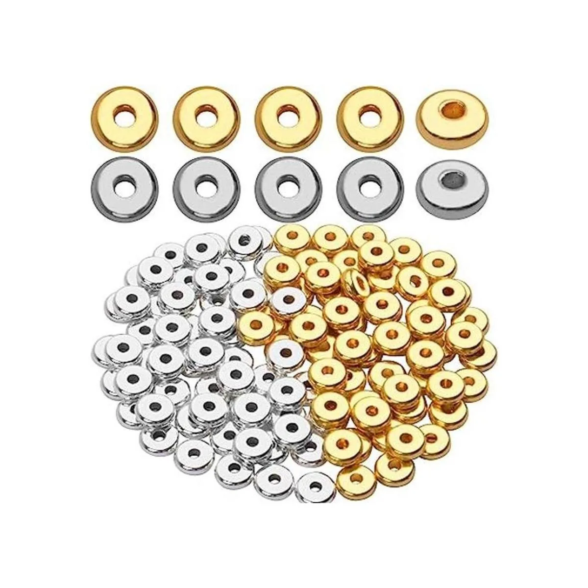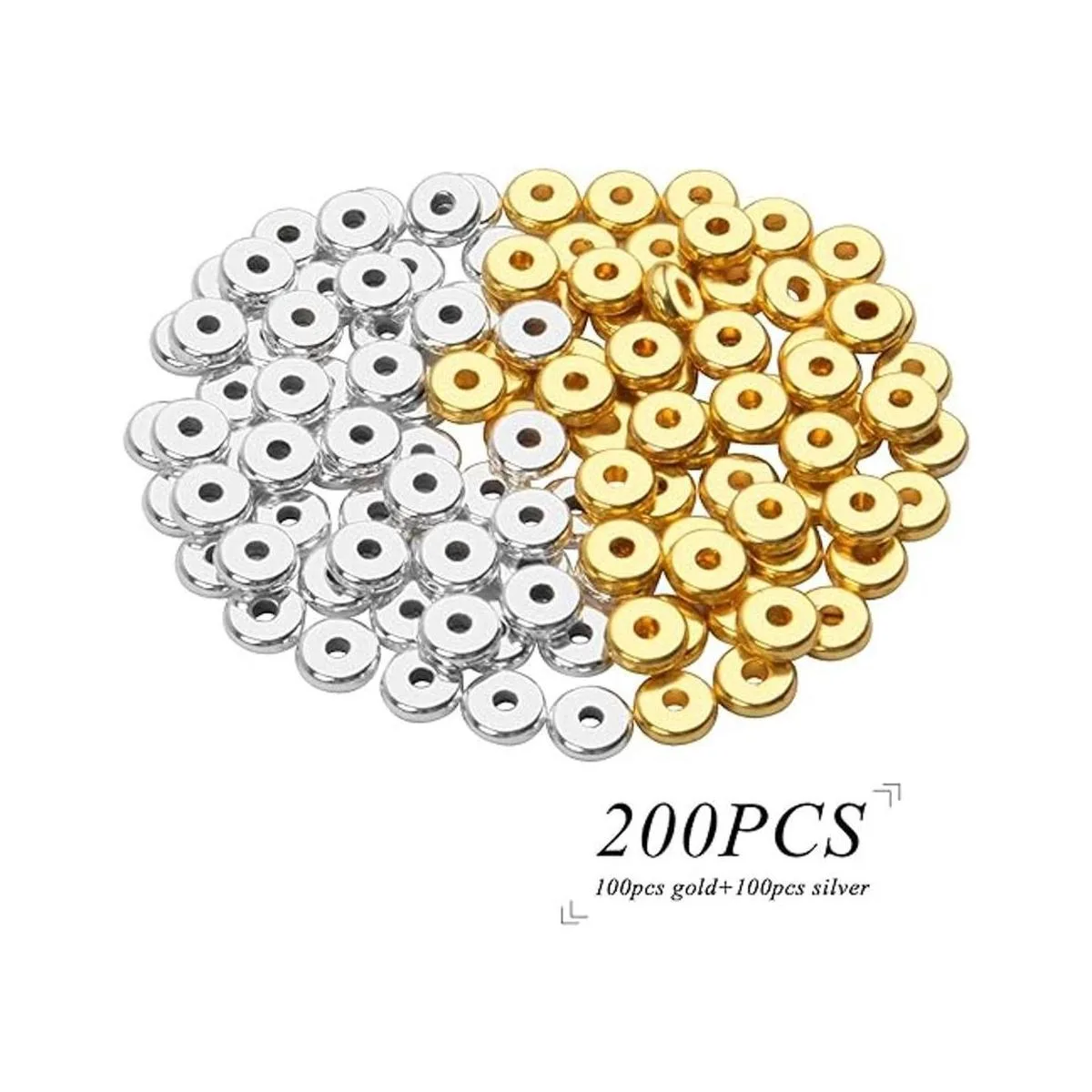 200 unidades de 0.315 in rondelle espaciadores de disco de cuentas sueltas de cuentas de metal espaciadores para pulsera de bricolaje, collar, manualidades, oro y plata