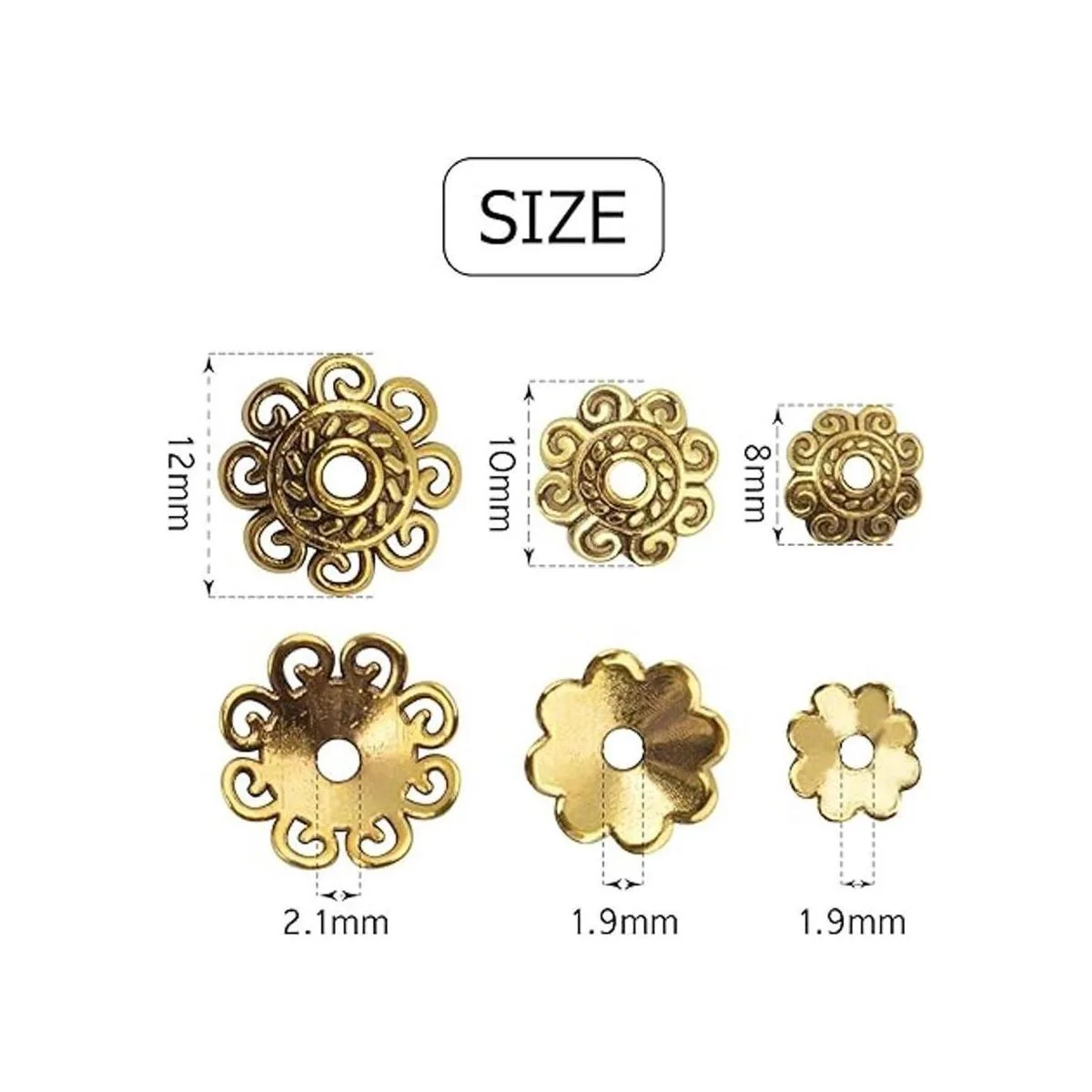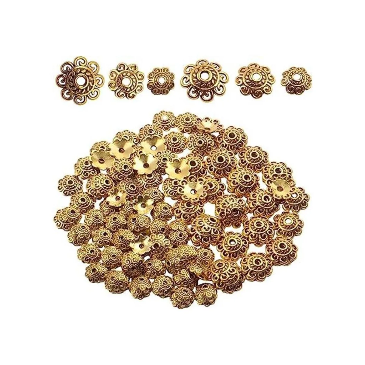 200 unidades de 0.315 in0.394 in0.472 in de cuentas espaciador de cuentas de flores gorras de cuentas de joyería DIY hallazgos para collar pulsera fabricación, oro antiguo