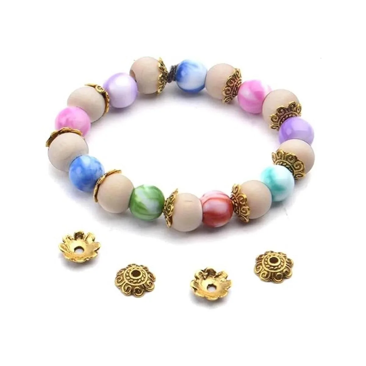 Contenido del paquete: el paquete incluye 200 tapas de cuentas espaciadoras, entre ellas 100 unidades son de 0.315 in de diámetro, 50 unidades de 0.394 in y 50 unidades de 0.472 in.
