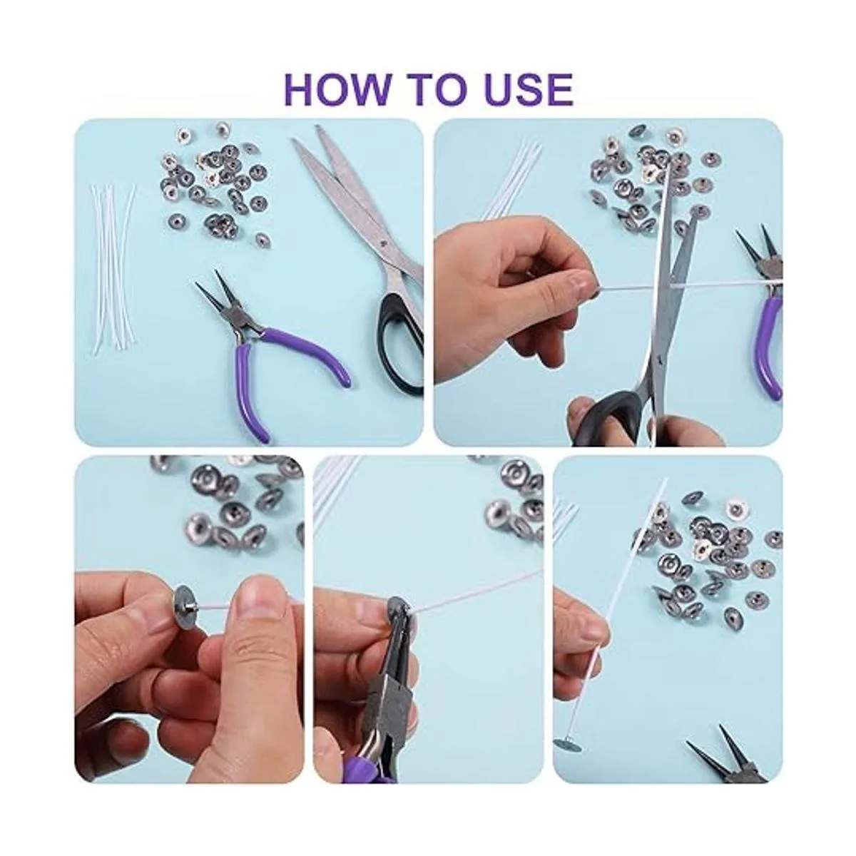 Amplia aplicación: las pestañas de mecha de metal se pueden aplicar para la mayoría de tamaños de mechas de velas, un bonito accesorio para la fabricación de velas, puede ayudarte a conectar mechas y mantener la mecha de vela centrada, hará que tu proceso de vela casera sea mucho más fácil