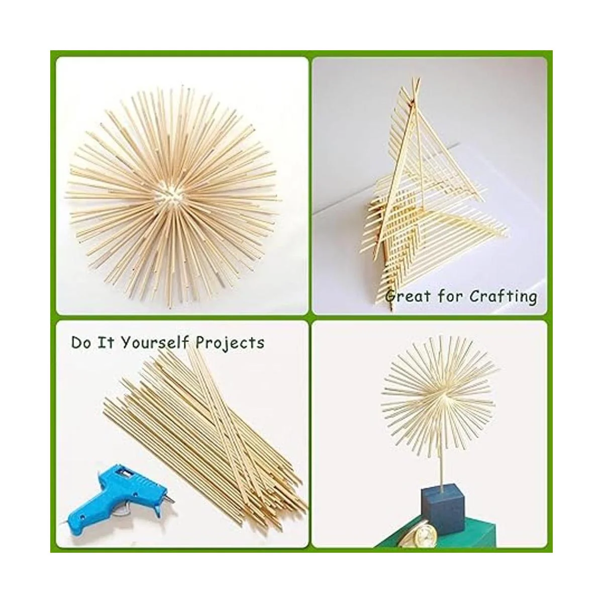 Palitos de madera para manualidades y bricolajes Estas varillas de madera son ideales para proyectos hechos a mano, carpintería, decoración del hogar, construcción de modelos, fabricación de juguetes de madera, accesorios de cabina de fotos, proyectos de ciencia escolar, estructuras de construcción como puentes, casas de muñecas, cometas, secciones de peso en modelos de avión o barco, manualidades, un poste de bandera o banderín, etc.