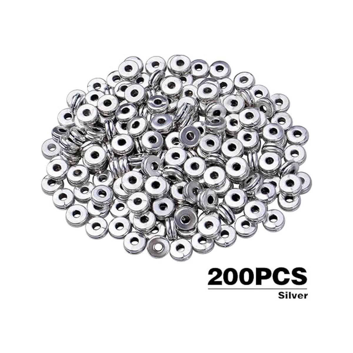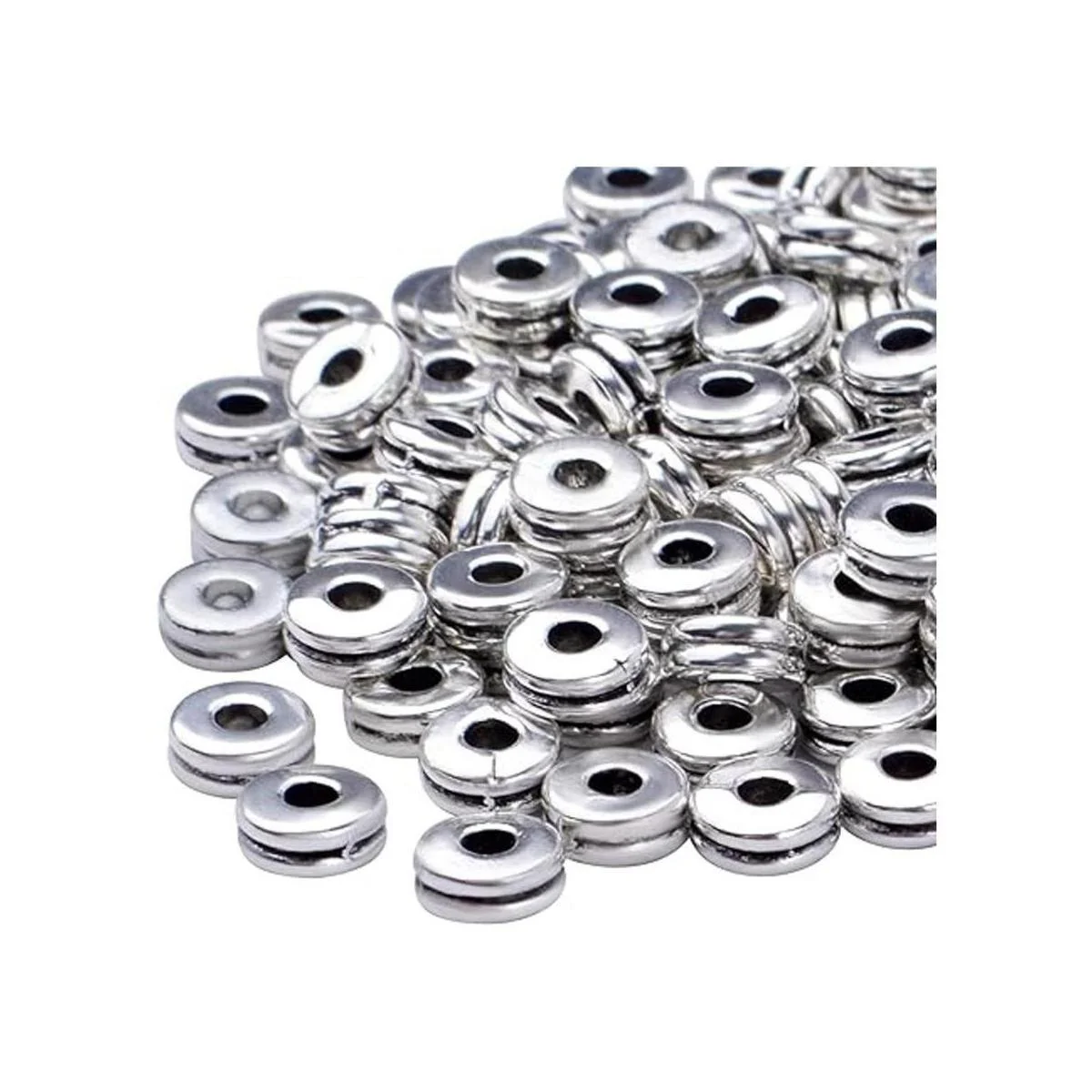 200pcs 0.236 in plata plana redonda espaciador cuentas Rondelle perlas disco espaciadores granos sueltos espaciador encanto cuentas para DIY pulsera joyería artesanía fabricación