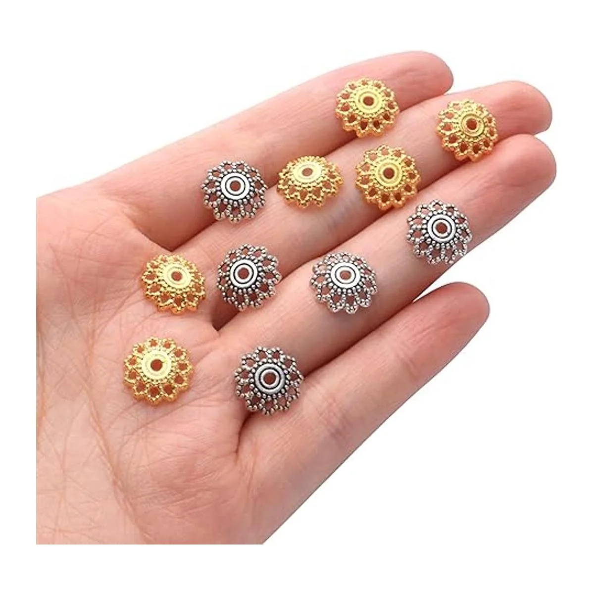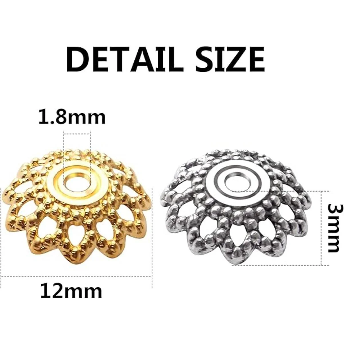 Cantidad suficiente: el paquete viene con 200 tapas de cuentas de flores en total, 2 colores oro antiguo y plata antigua, 100 unidades de cada color. Suficiente cantidad de cuentas de flores que te proporcionará suficiente suministros para decorar y manualidades.