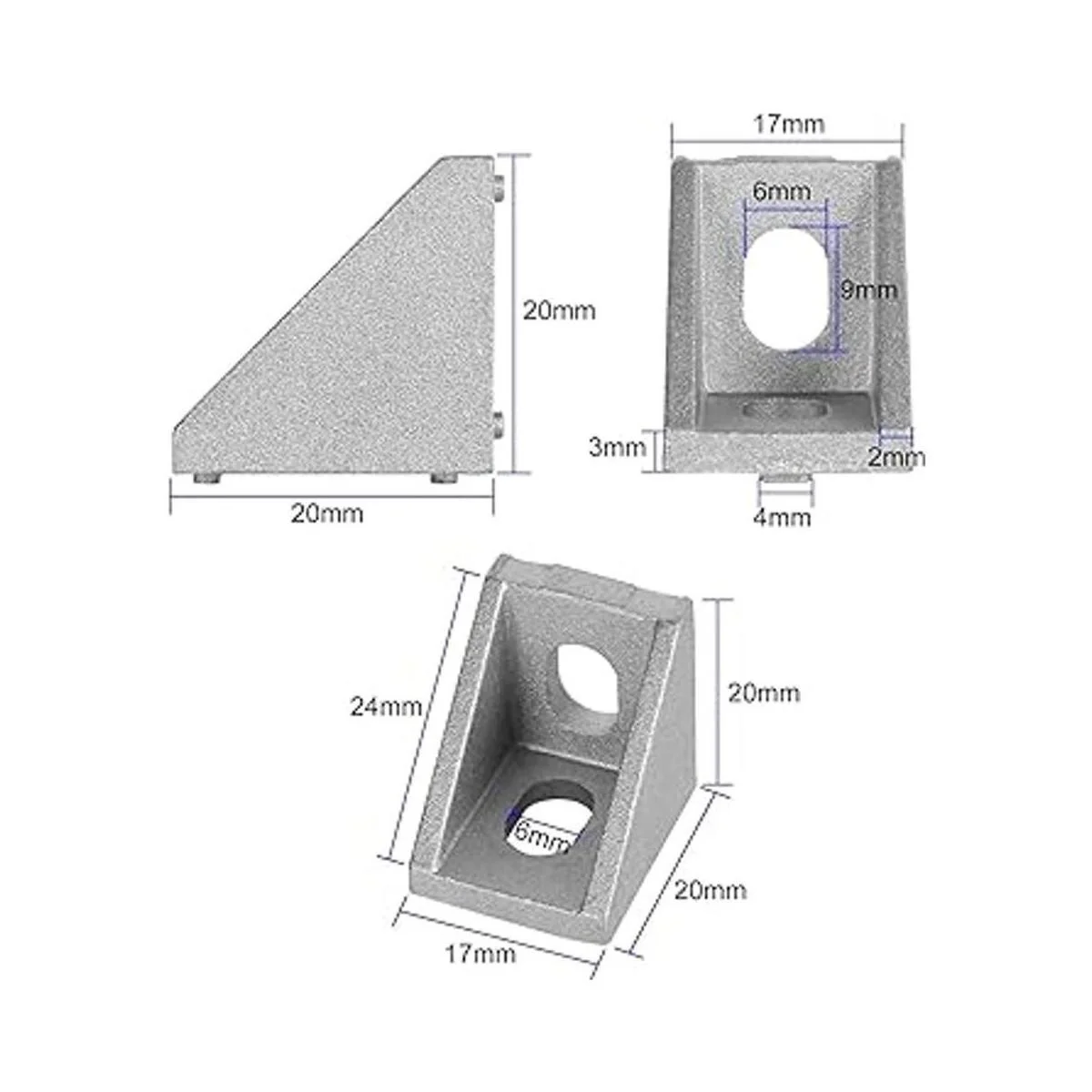 Material: los soportes de esquina de aluminio 2020 están hechos de aluminio fundido sólido, resistente a la corrosión, resistente y duradero.