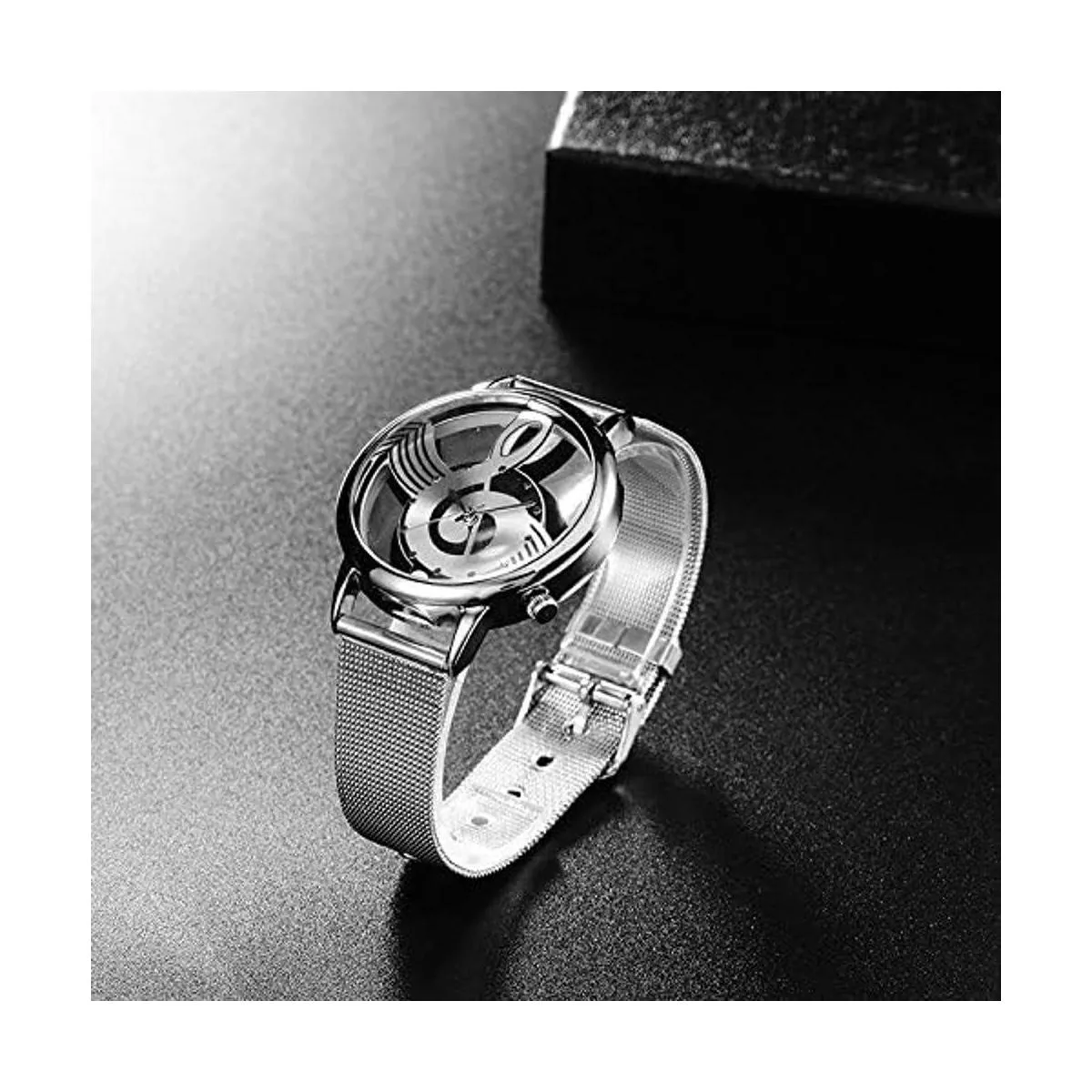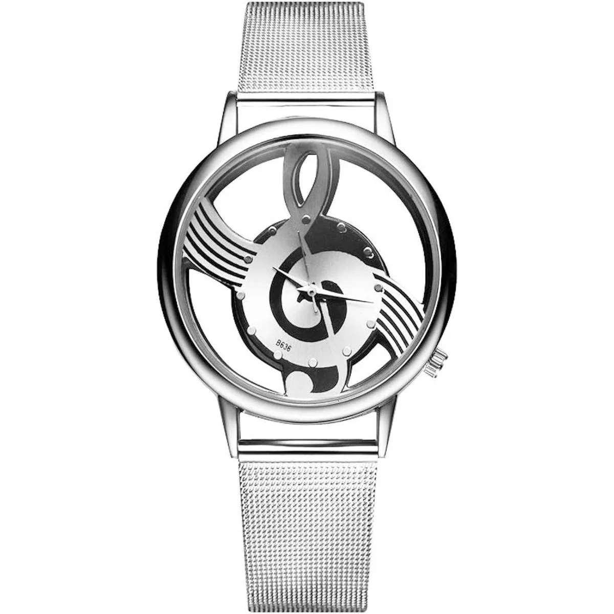 2021 nueva nota musical hueco acero inoxidable malla correa cuarzo reloj de pulsera unisex moda