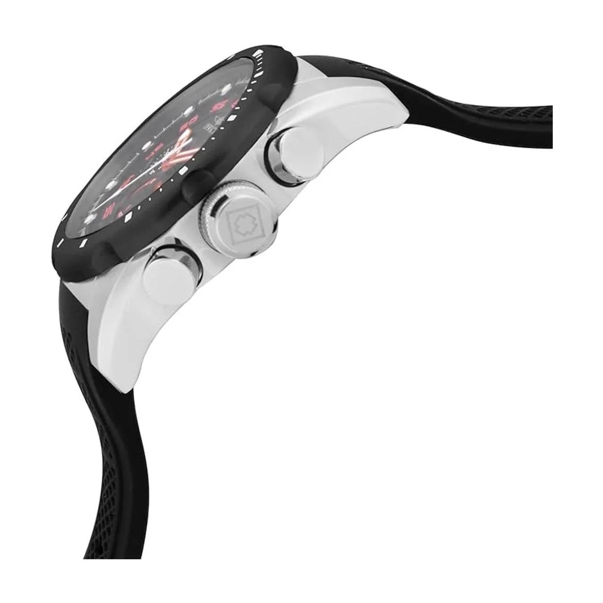Incluye banda de poliuretano con cierre de hebilla y función cronógrafo con subesferas 60second, 24 horas, y 1/10 segundos subdials