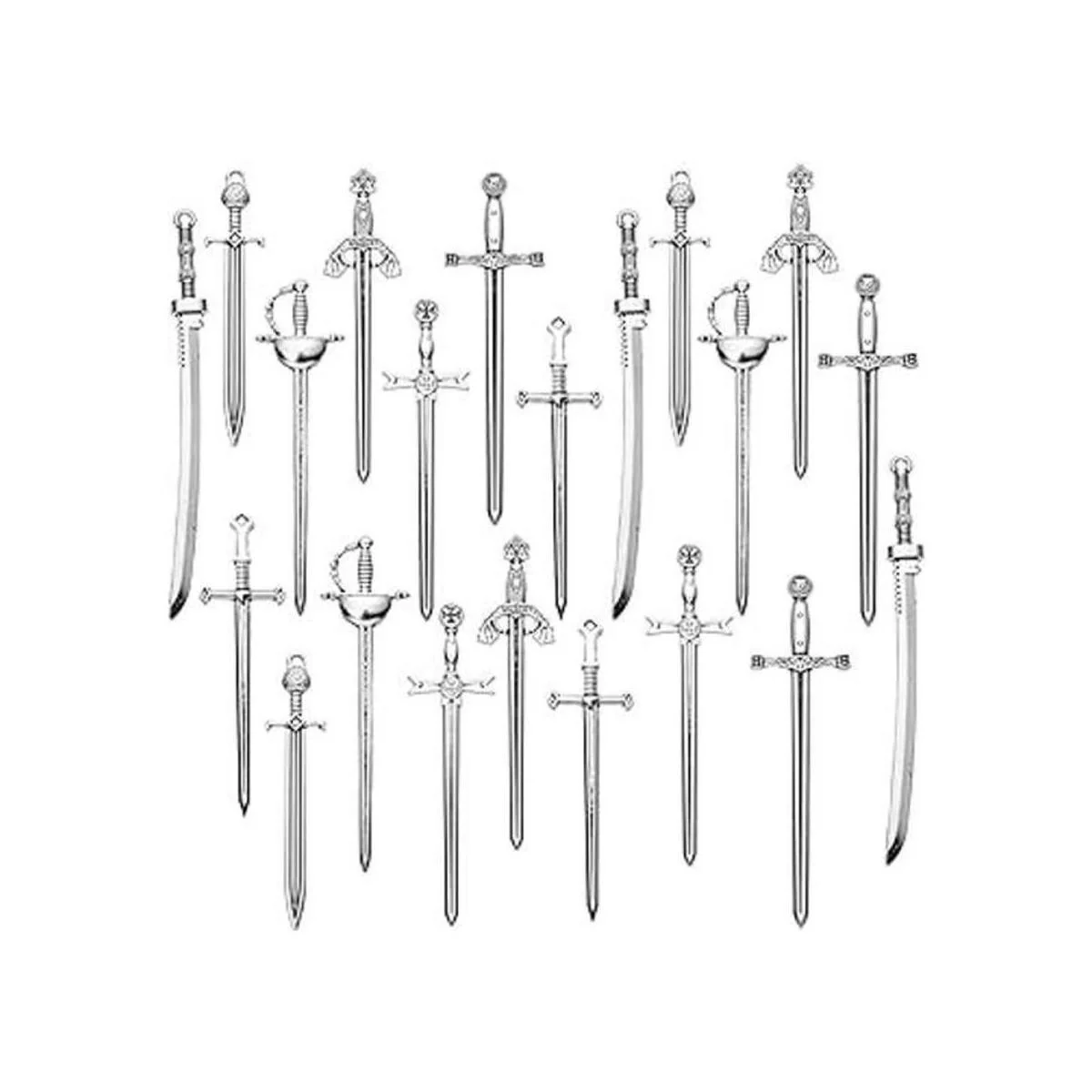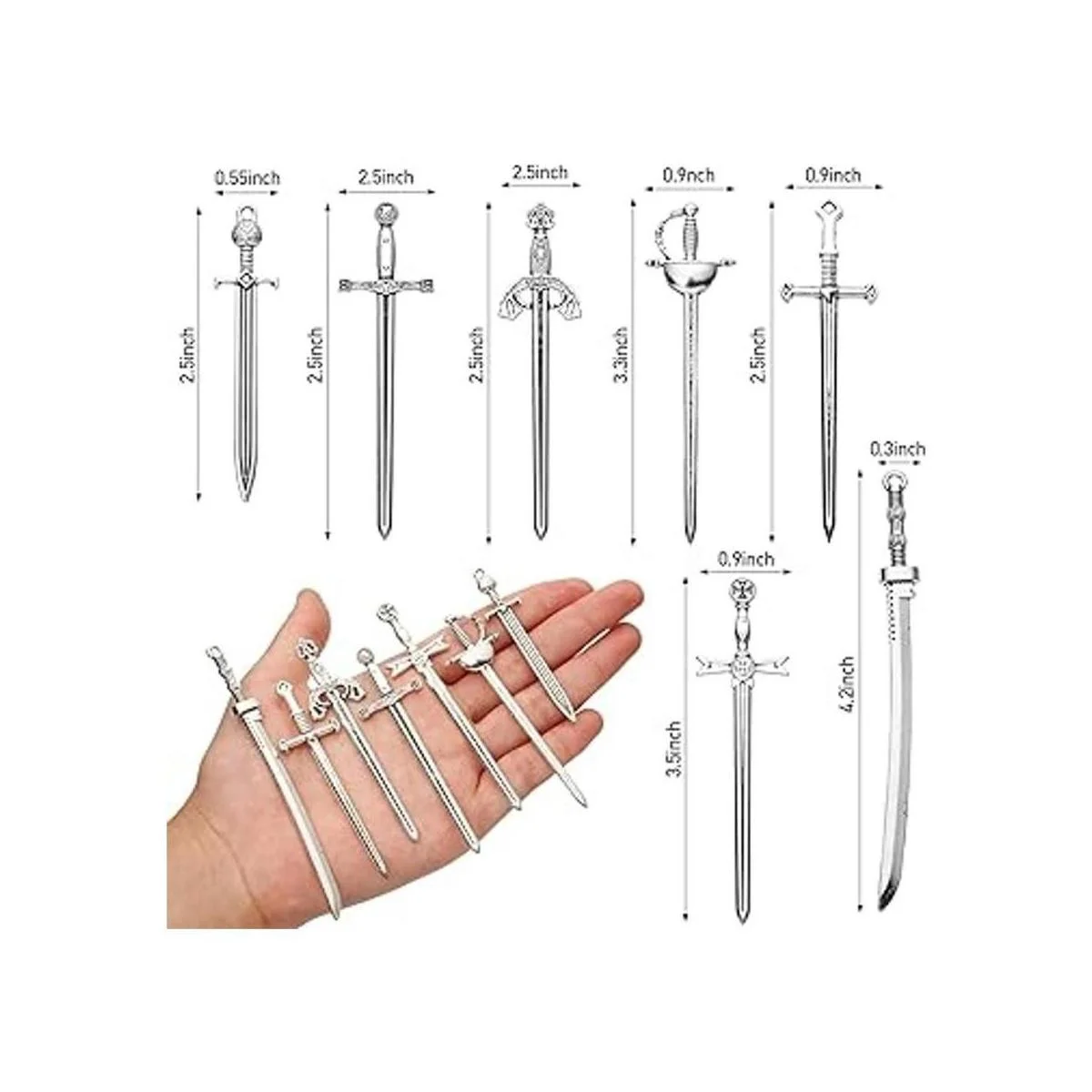 21 piezas de espadas antiguas para marcapáginas, espadas, cuchillos, dijes, cuchillos para marcadores, collares, pulseras, joyería, Plata