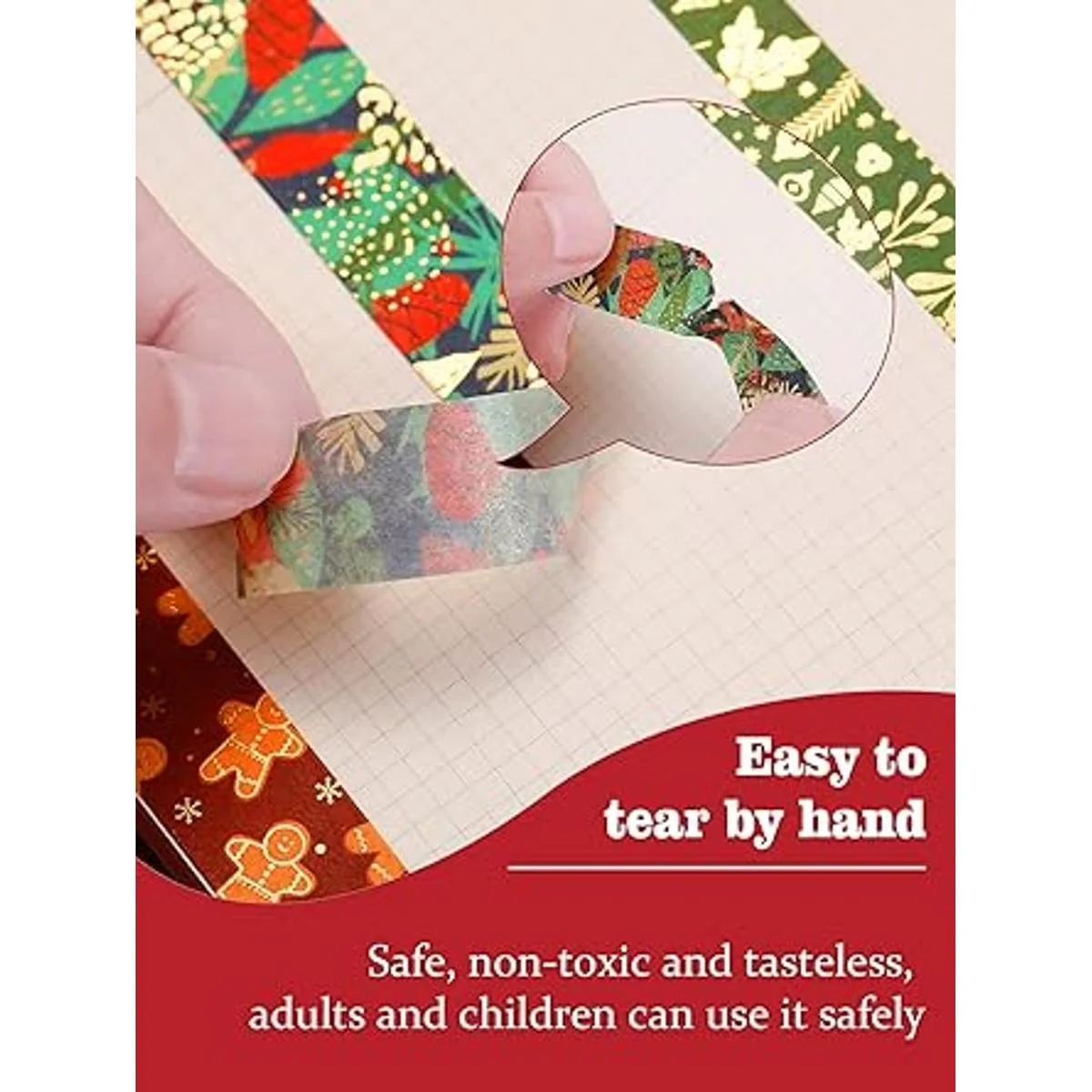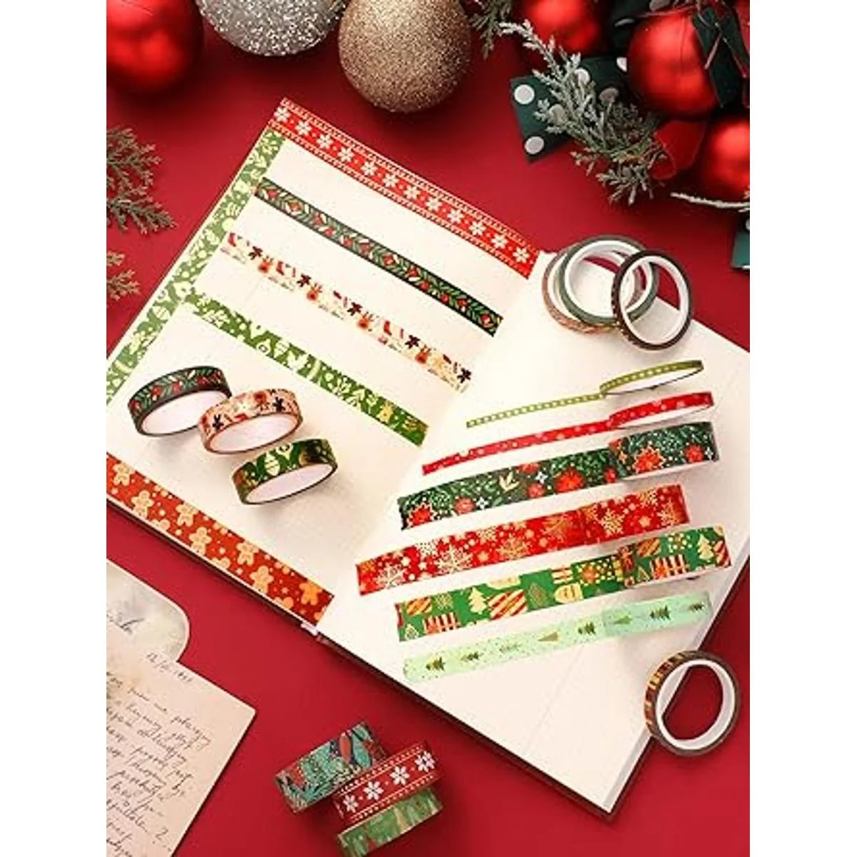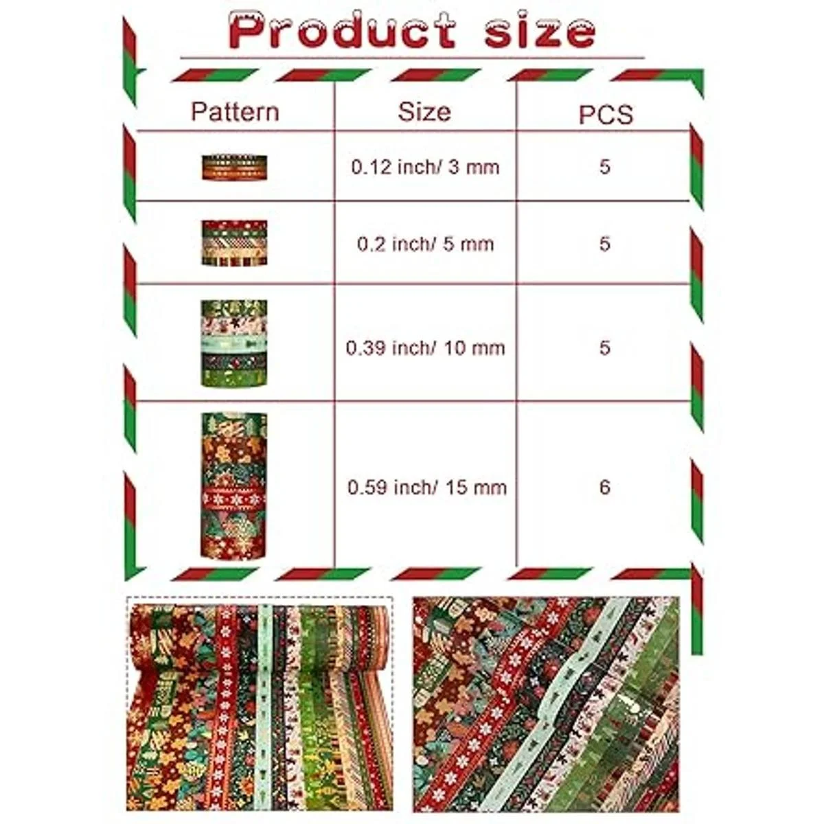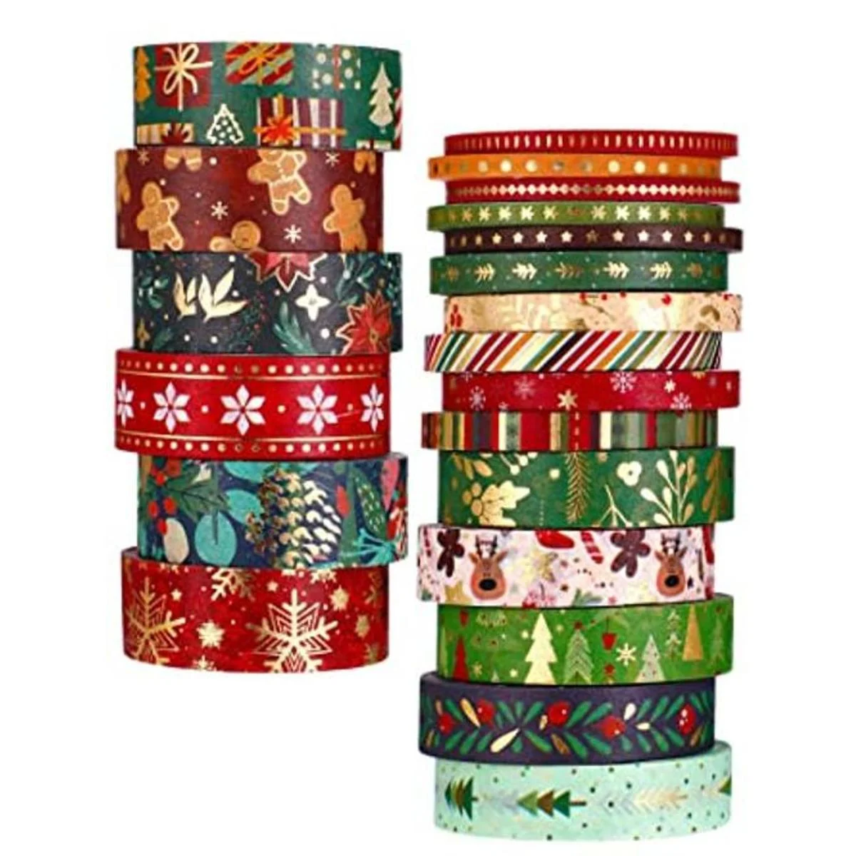 Juego de cintas coloridas: hemos preparado 21 rollos de cintas washi navideñas en diferentes tamaños y patrones para ti en el paquete, cantidad suficiente y varios estilos pueden satisfacer tus demandas decorativas y de manualidades tanto como sea posible