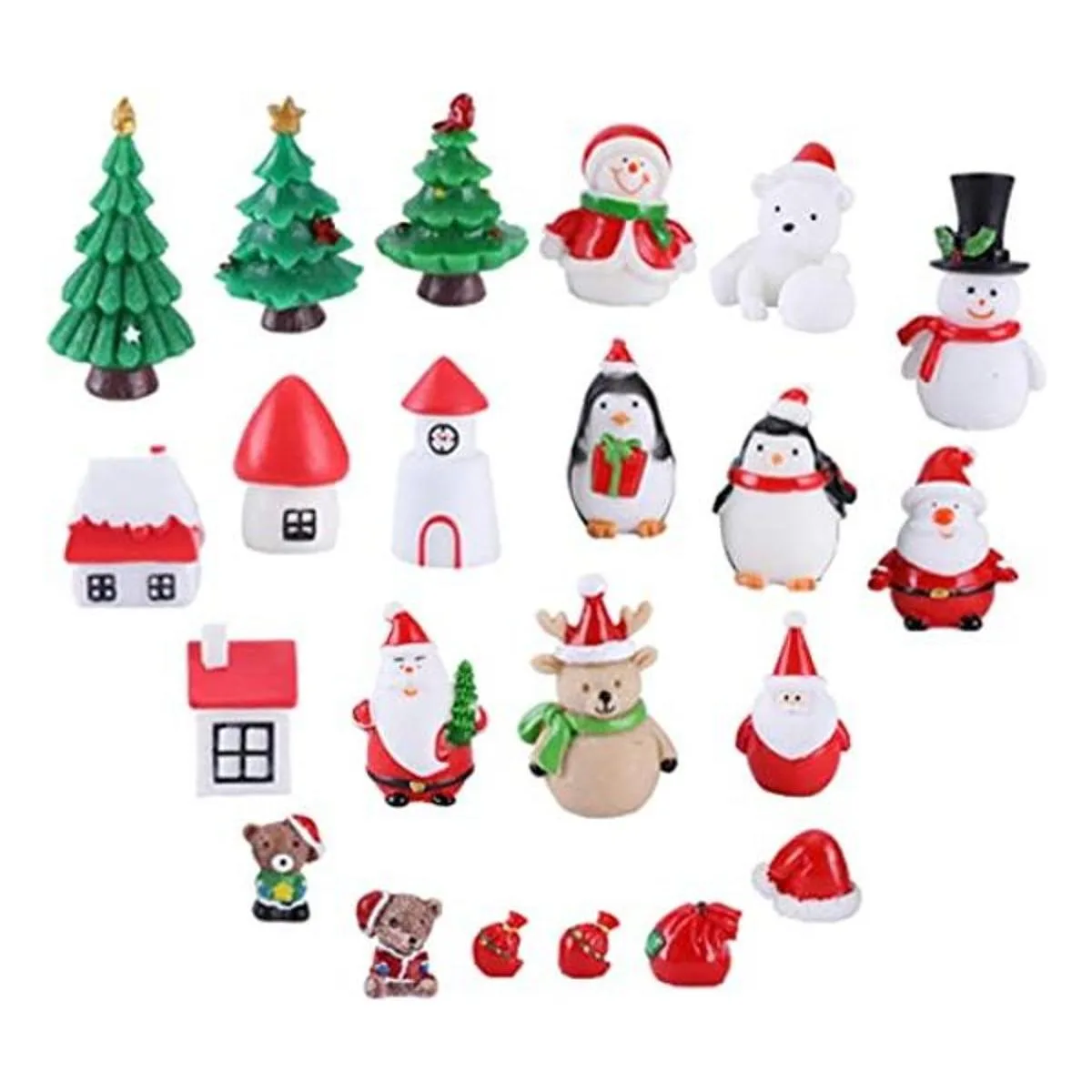 22 piezas de adornos en miniatura de Navidad para jardín de hadas, accesorios de casa de muñecas, globo de nieve, decoración en miniatura de Navidad, árbol de Navidad, muñeco de nieve, mini adornos para decoración de fiesta de Navidad