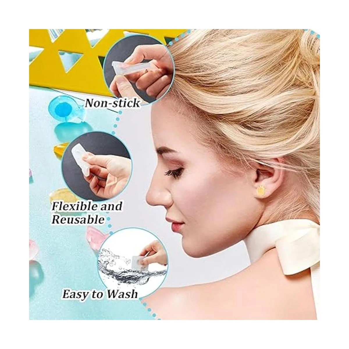 Bonito material: nuestros moldes de resina para aretes están hechos de material de silicona, se pueden utilizar durante mucho tiempo, no son fáciles de romper, la superficie lisa y la textura cómoda te permiten liberar las manualidades del molde fácilmente