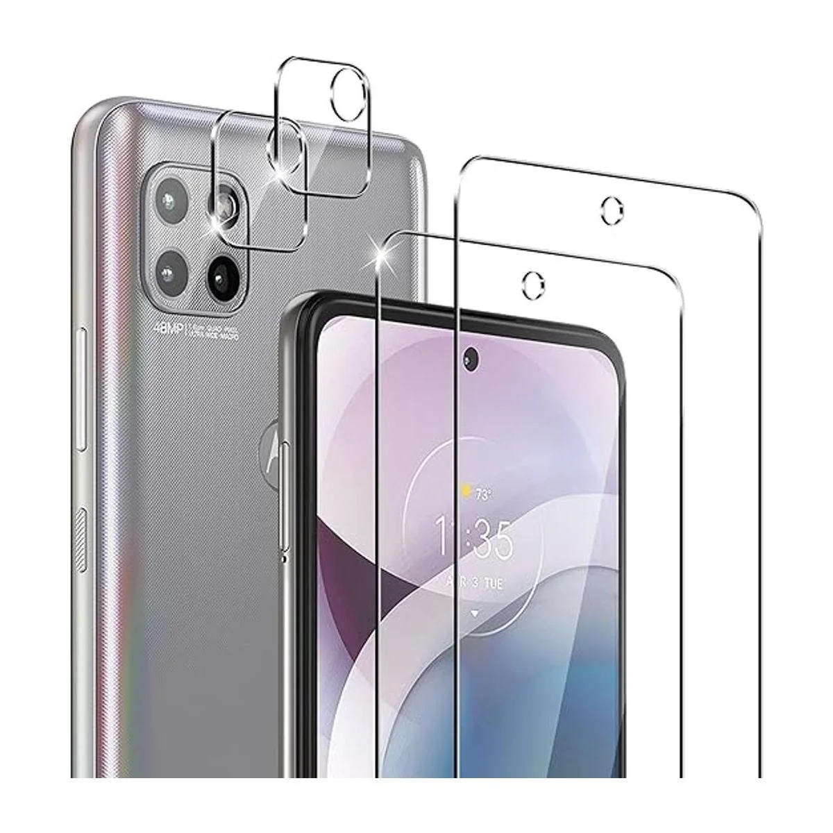 Dispositivo compatible: especialmente diseñado para Motorola Moto One 5G Ace, embalaje con 2 paquetes de protectores de pantalla de vidrio templado y 2 paquetes de protectores de lente de cámara; protege tu teléfono perfectamente en todos los aspectos. No para Moto G 5G/One 5G/One 5G UW.
