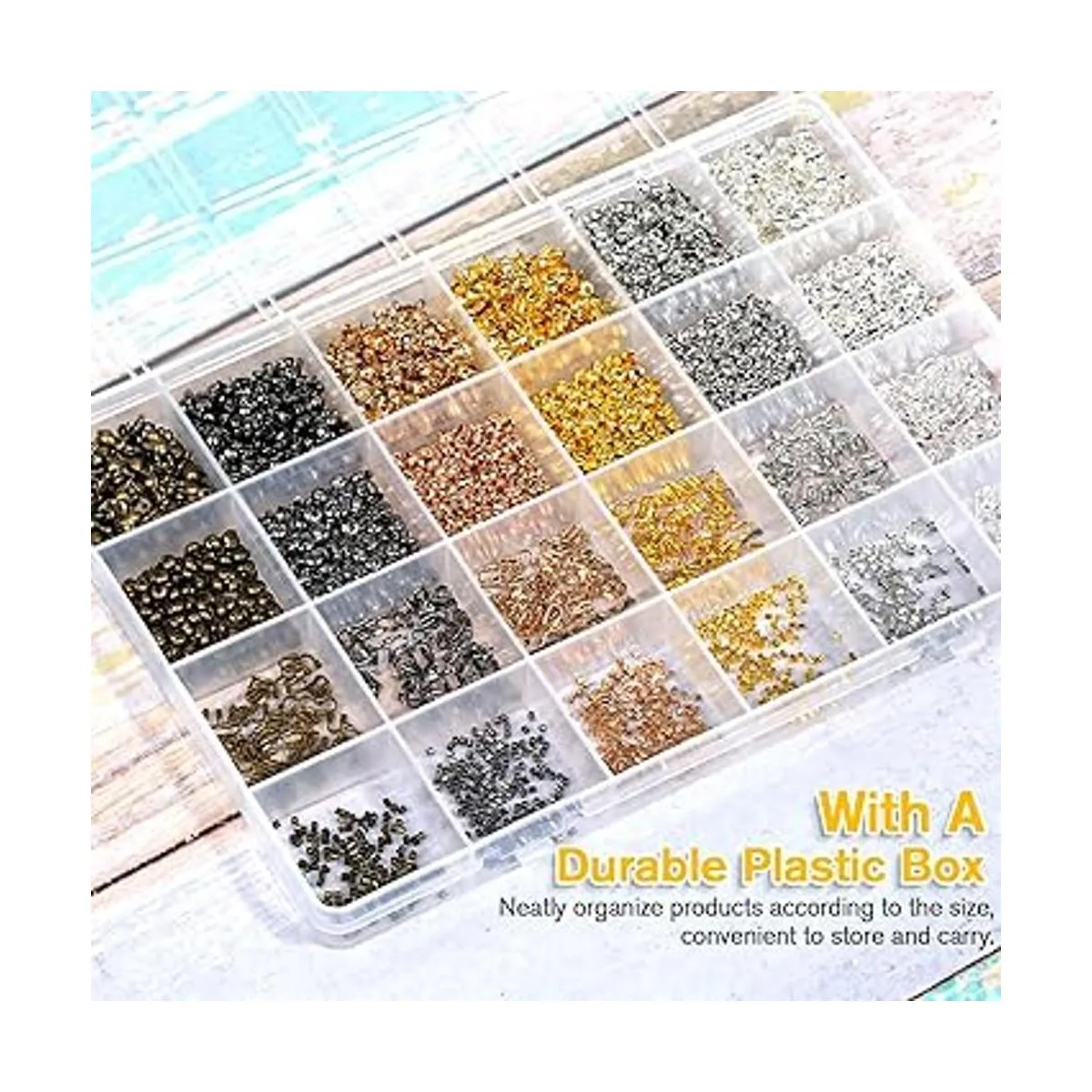 Caja de contenedores de alta calidad: todas las cubiertas de cuentas de crimpado se colocan individualmente en un recipiente de almacenamiento de 24 compartimentos para mantener las piezas pequeñas limpias y organizadas