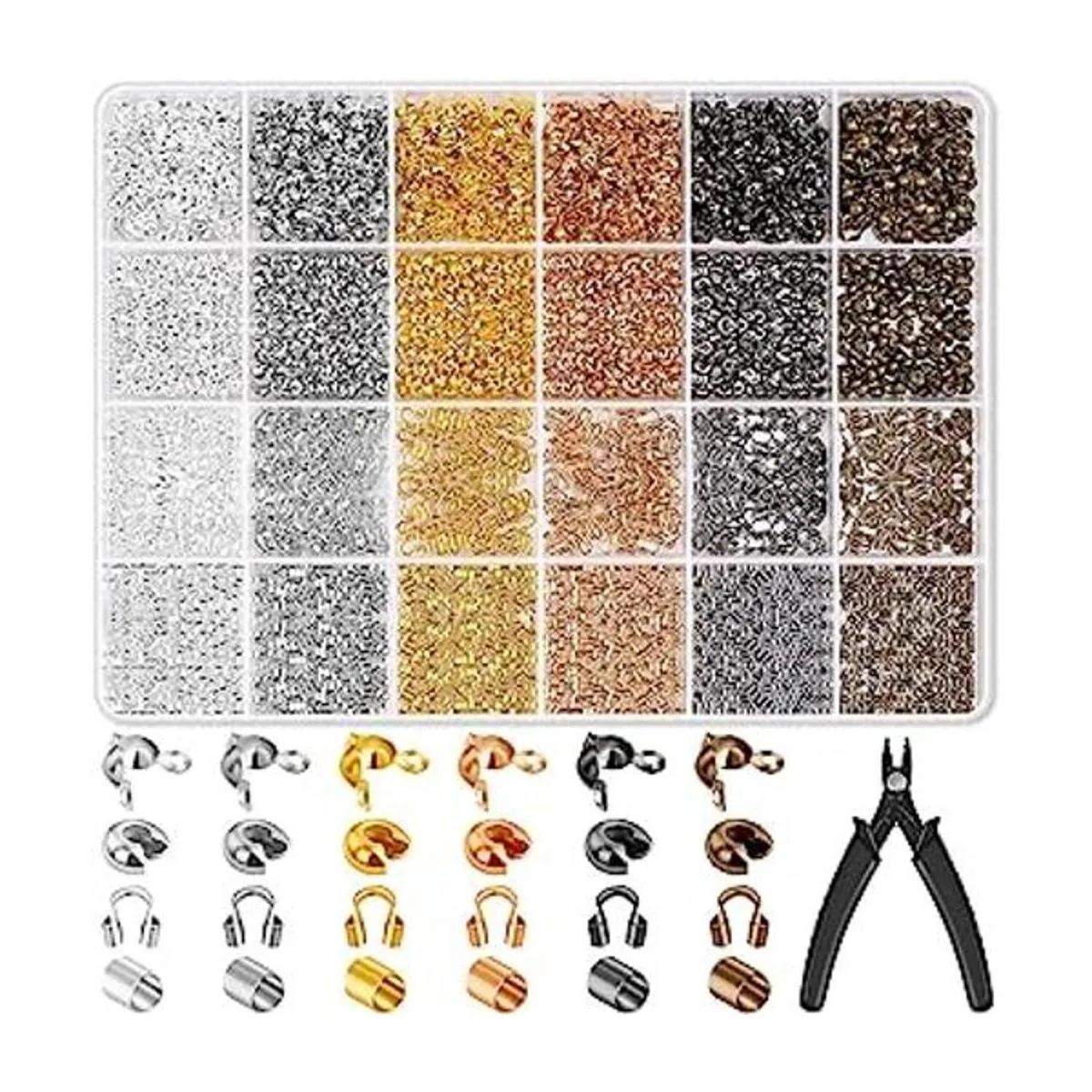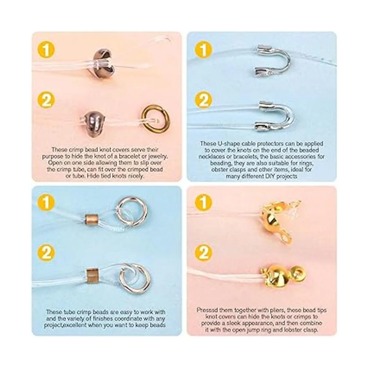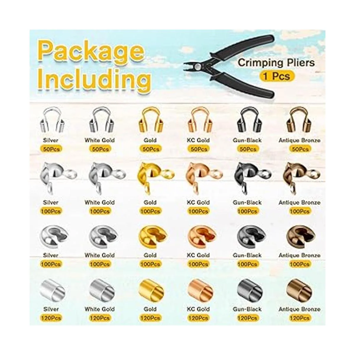 2220 cuentas engarzadas para hacer joyas, cubiertas de nudo Acejoz, cubiertas de cuentas engarzadas, tubos de crimpado y guardianes de alambre con alicates de prensado para hacer joyas, pulseras, collares
