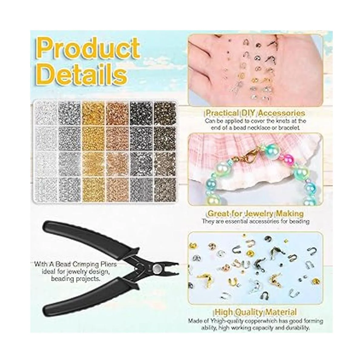 Adecuado para bricolaje: estas cubiertas de cuentas de crimpado se utilizan para engarzar para ocultar los nudos en tu cuerda, cuero, cuerda de nailon, hilo, alambre de metal, gamuza y otras fibras; se pueden aplicar con anillo de salto, cierre de langosta, ganchos de aretes, cuentas, adecuado para hacer aretes, pulseras, collares, tobilleras y mucho más