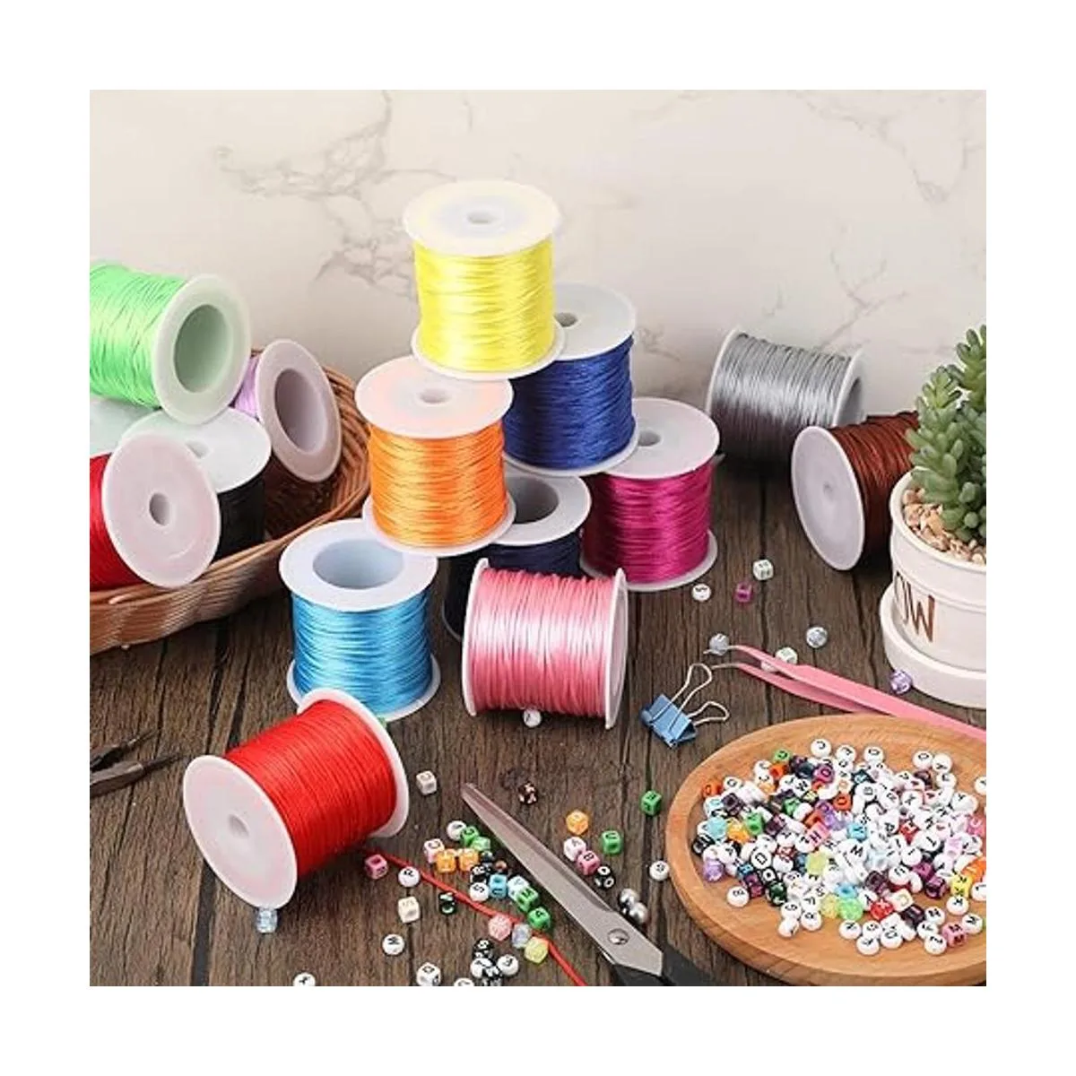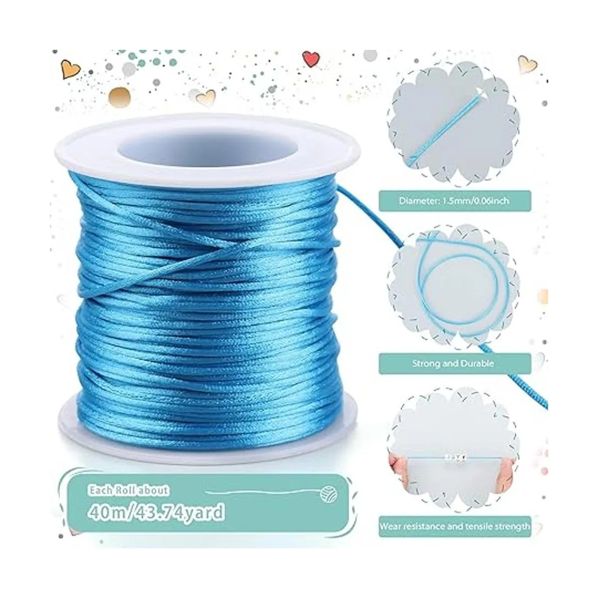 Divertido de usar: el cordón de joyería se puede aplicar ampliamente para pulseras de macramé, nudos chinos, cuentas, envoltura, cordones, collares trenzados, cordón ciego de ventana, Kumihimo, velos de novia, pulseras de amistad y mucho más