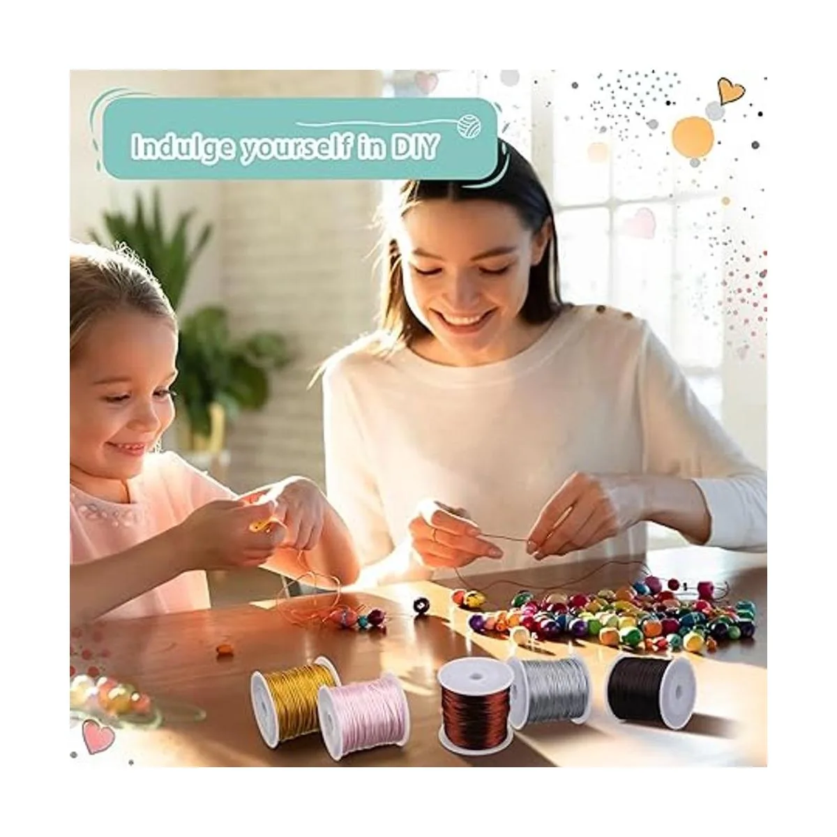 Tamaño adecuado para usar: cada rollo de hilo de nailon para pulseras mide aproximadamente 0.059 in de diámetro, aproximadamente 131.2 ft de longitud, un total de aproximadamente 1005 yardas para que hagas borlas o descanses campanillas de viento, no hay necesidad de preocuparse por la longitud insuficiente; también puedes cortarlo en una longitud adecuada de acuerdo a las necesidades reales