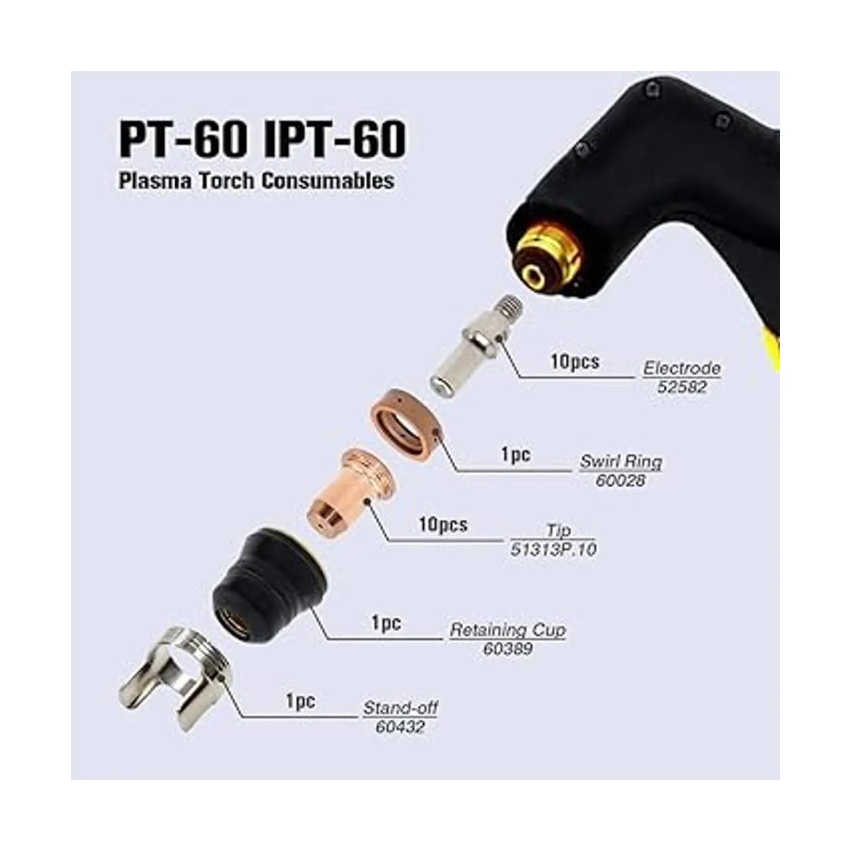 23 piezas IPT60 PT60 IPT40 PT40 Punta de corte de plasma de 0.039 in 0.039 pulgadas Tapa de electrodo blindadoseparaciónanillo de remolino