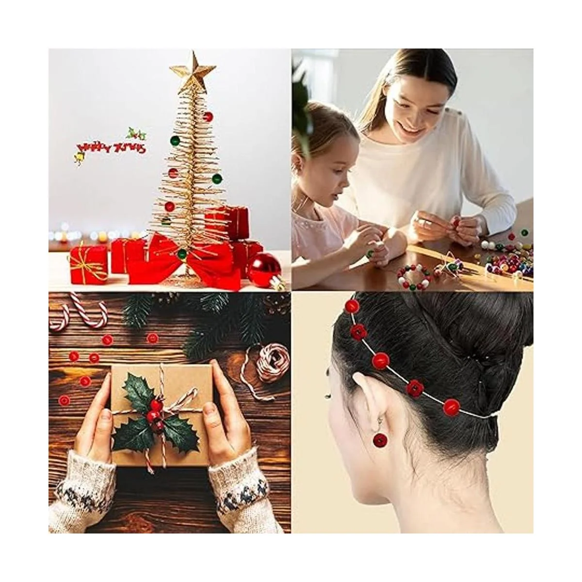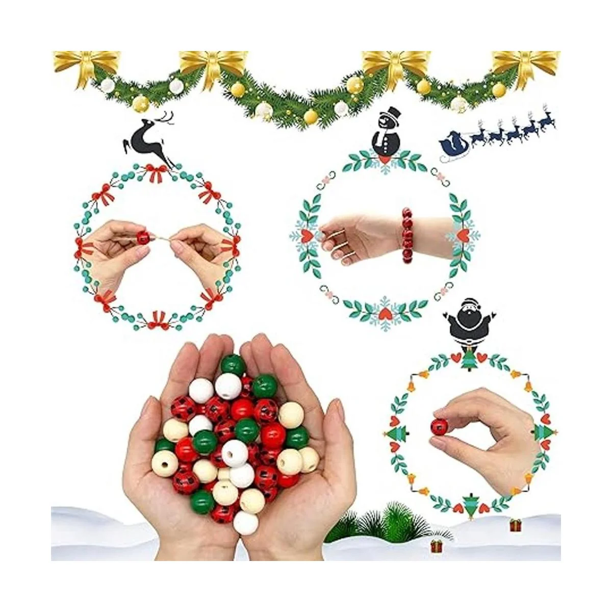 Decoraciones navideñas: estas coloridas cuentas de madera tienen 5 colores con un fuerte ambiente festivo de Navidad, adecuadas para Navidad, boda, aniversario y más, ilumina tu fiesta temática. Puedes dar estas decoraciones de cuentas como regalo para familiares, amigos, colegas y otros amantes del bricolaje.
