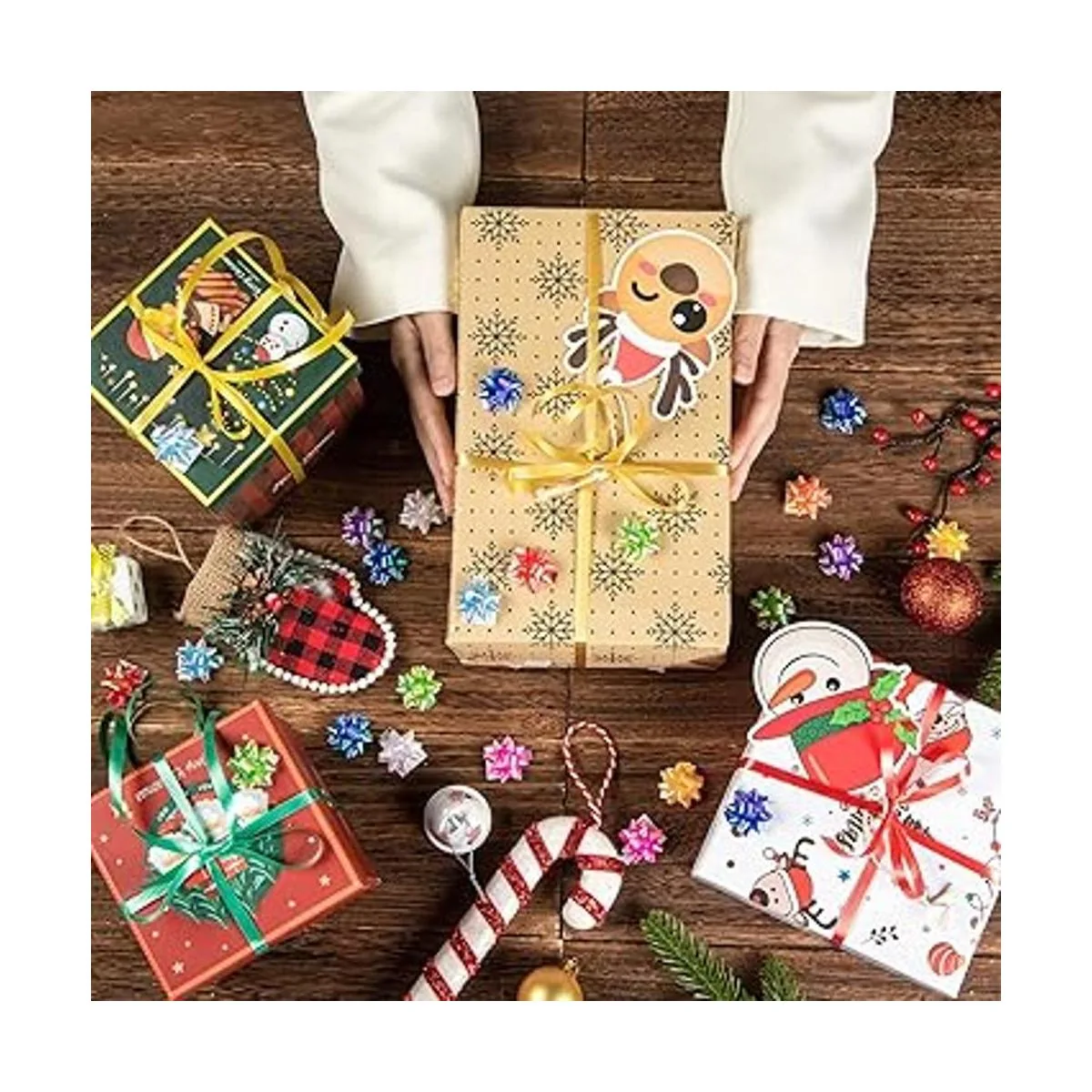 Lazos autoadhesivos. Los suministros de envoltura autoadhesivos son los mejores para principiantes que quieren comenzar su envoltura de regalos directamente a pie. Simplemente despega y pega los lazos de regalo de Navidad. Presiona firmemente durante un mínimo de 5 segundos. No necesita cinta. Con estos lazos navideños, nunca es difícil diseñar tus regalos