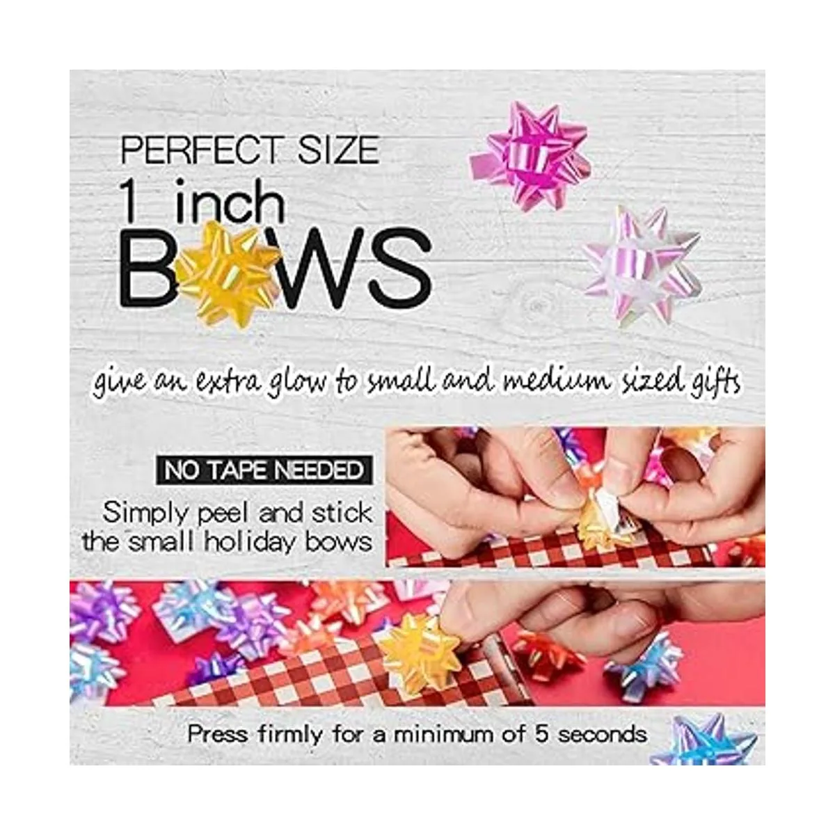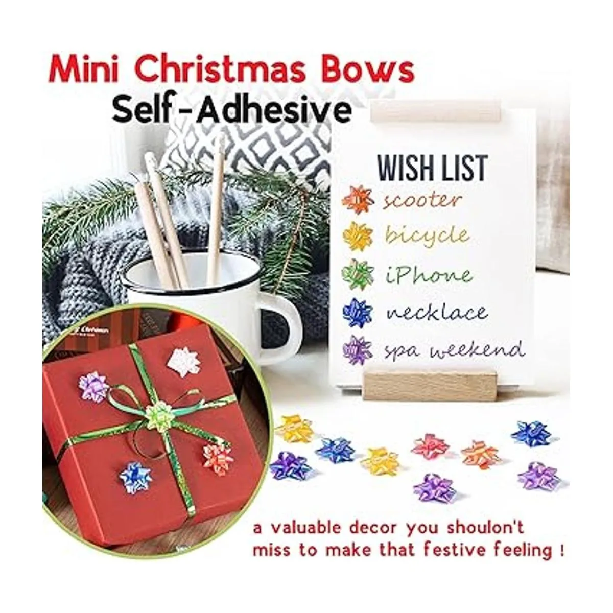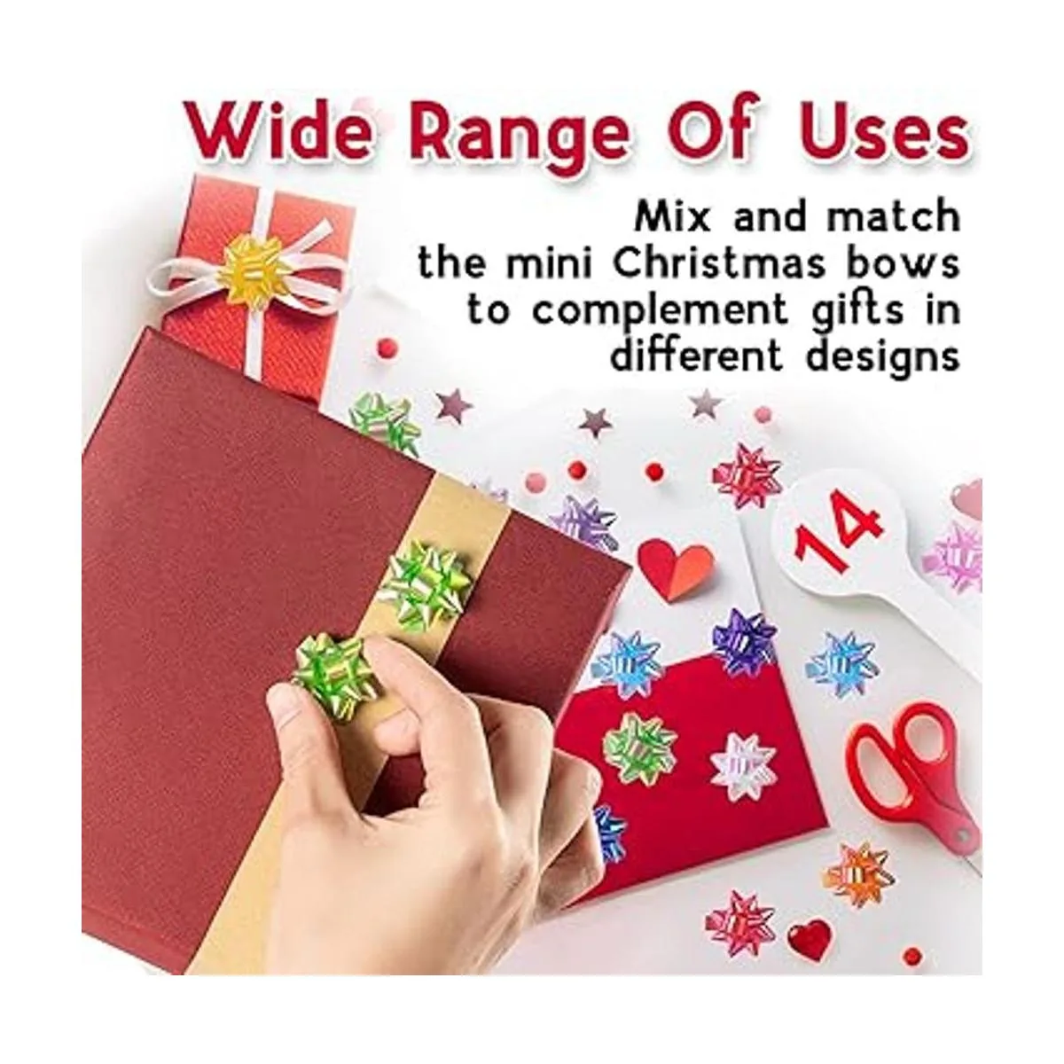 Lazos de Navidad de tamaño perfecto para todos los regalos. Envuelve tus regalos con un arco iris de un lazo de vacaciones en ellos. Aumenta la anticipación de tus seres queridos pegando lazos de Navidad. Dale un brillo extra a regalos pequeños y medianos y pega estos lazos de regalo en la parte superior del vino, cajas de joyería, cajas pequeñas o sobres.