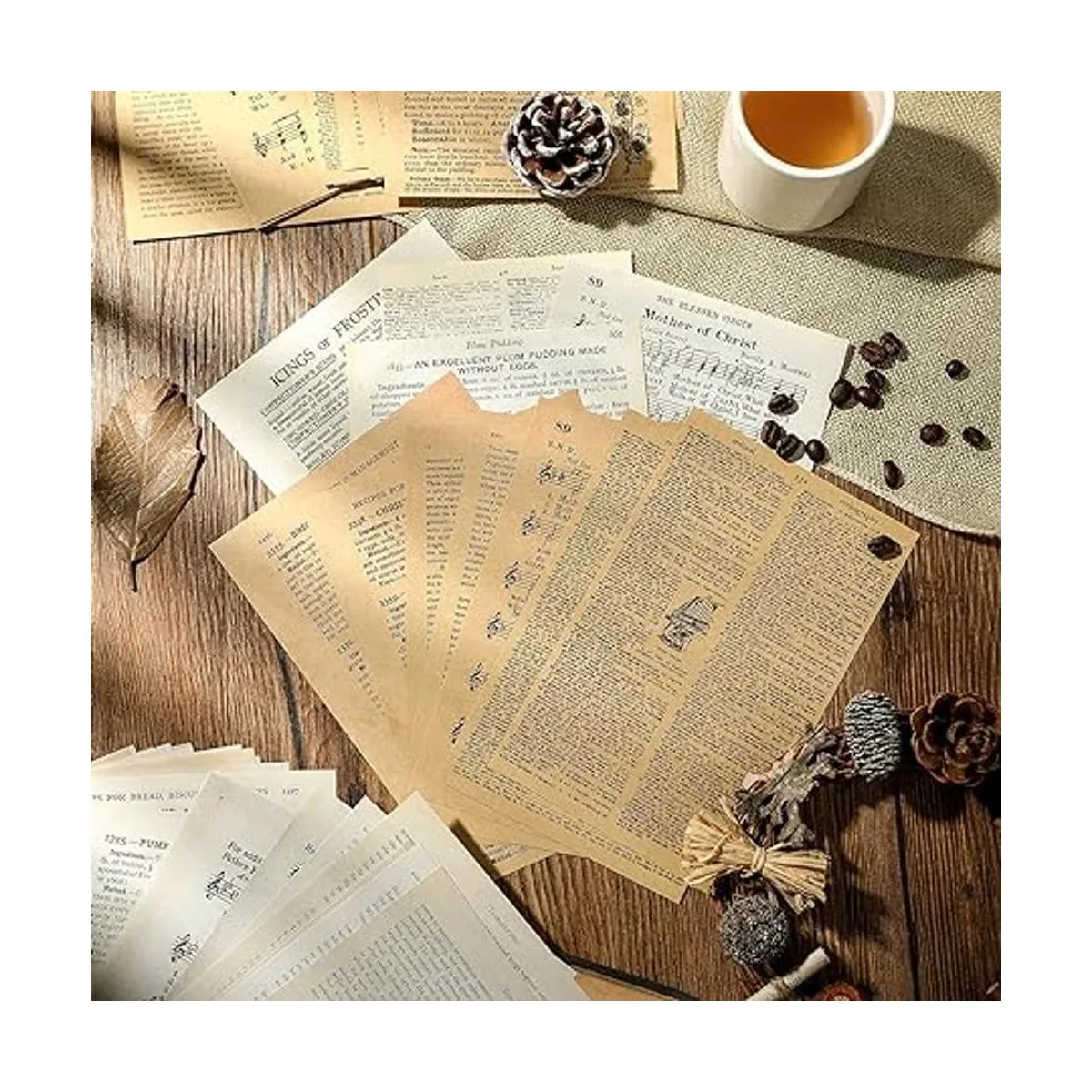 Varios estilos: estos papeles decorativos de diario son diferentes en estilos, estilos de libro vintage, diferentes estilos están disponibles para que elijas, que se pueden combinar bien con otros objetos; puedes elegir tu patrón favorito para crear hermosos y diferentes proyectos de bricolaje, agradable para que disfrutes del tiempo feliz de bricolaje