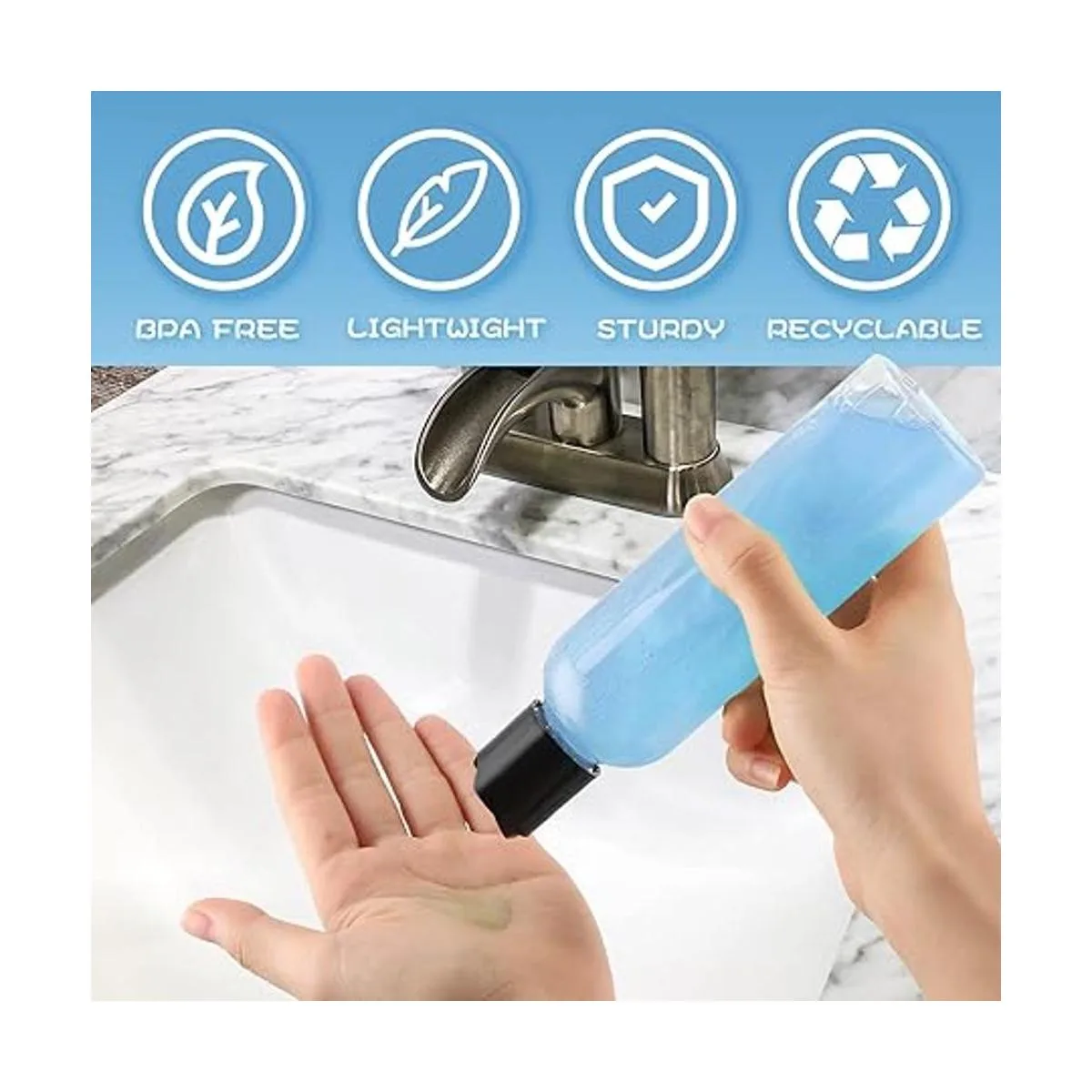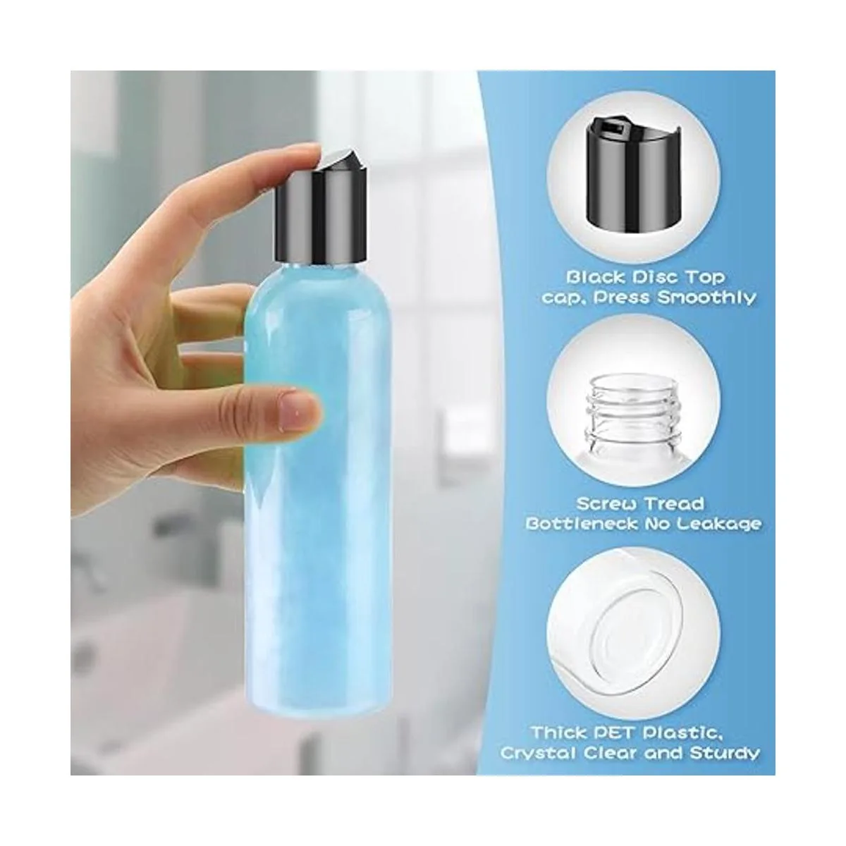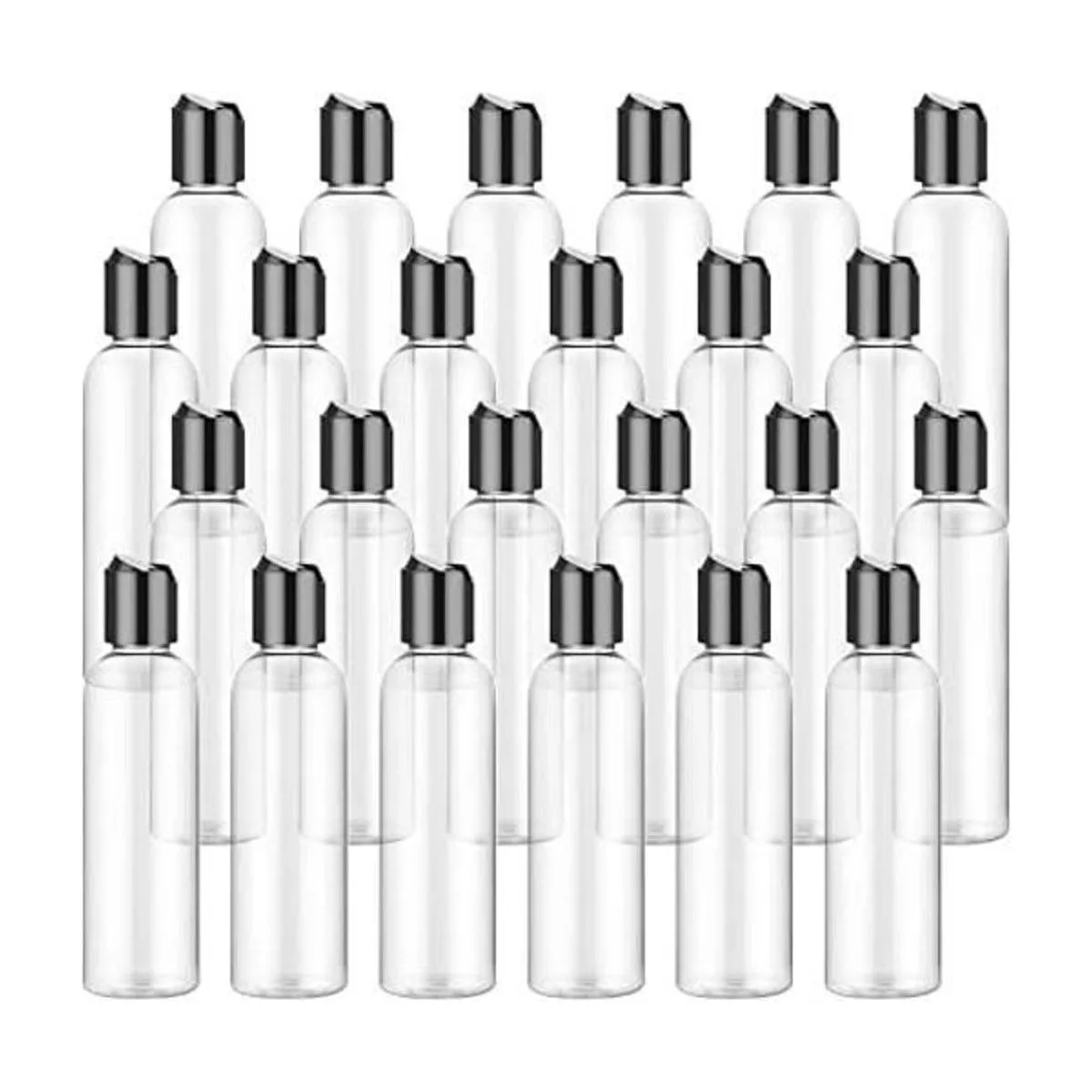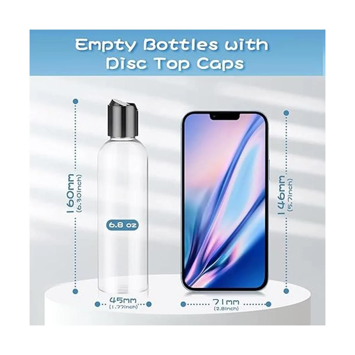 24 botellas vacías de plástico transparente de 6.8 onzas, recipientes recargables con tapa de disco, botellas de champú de viaje para champú, lociones, cremas, líquido cosmético jabón corporal