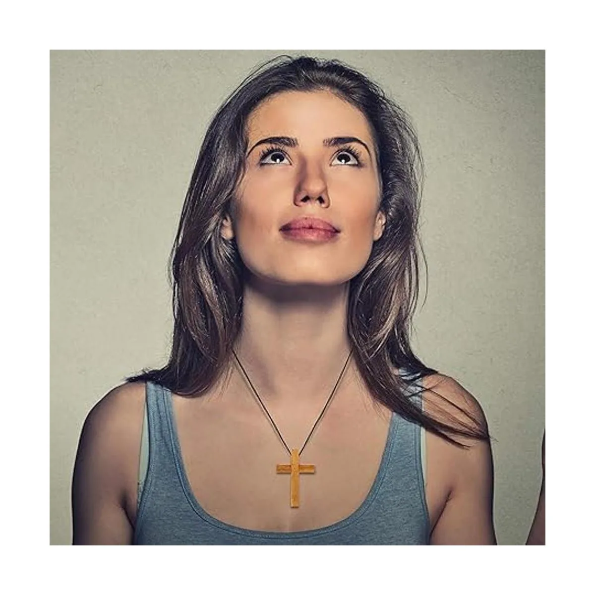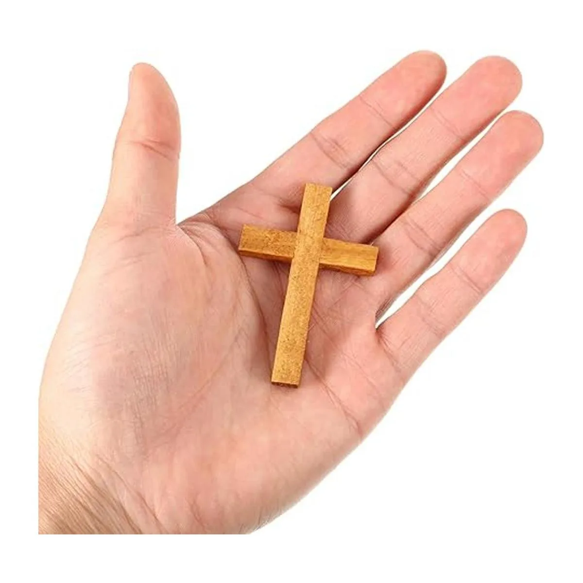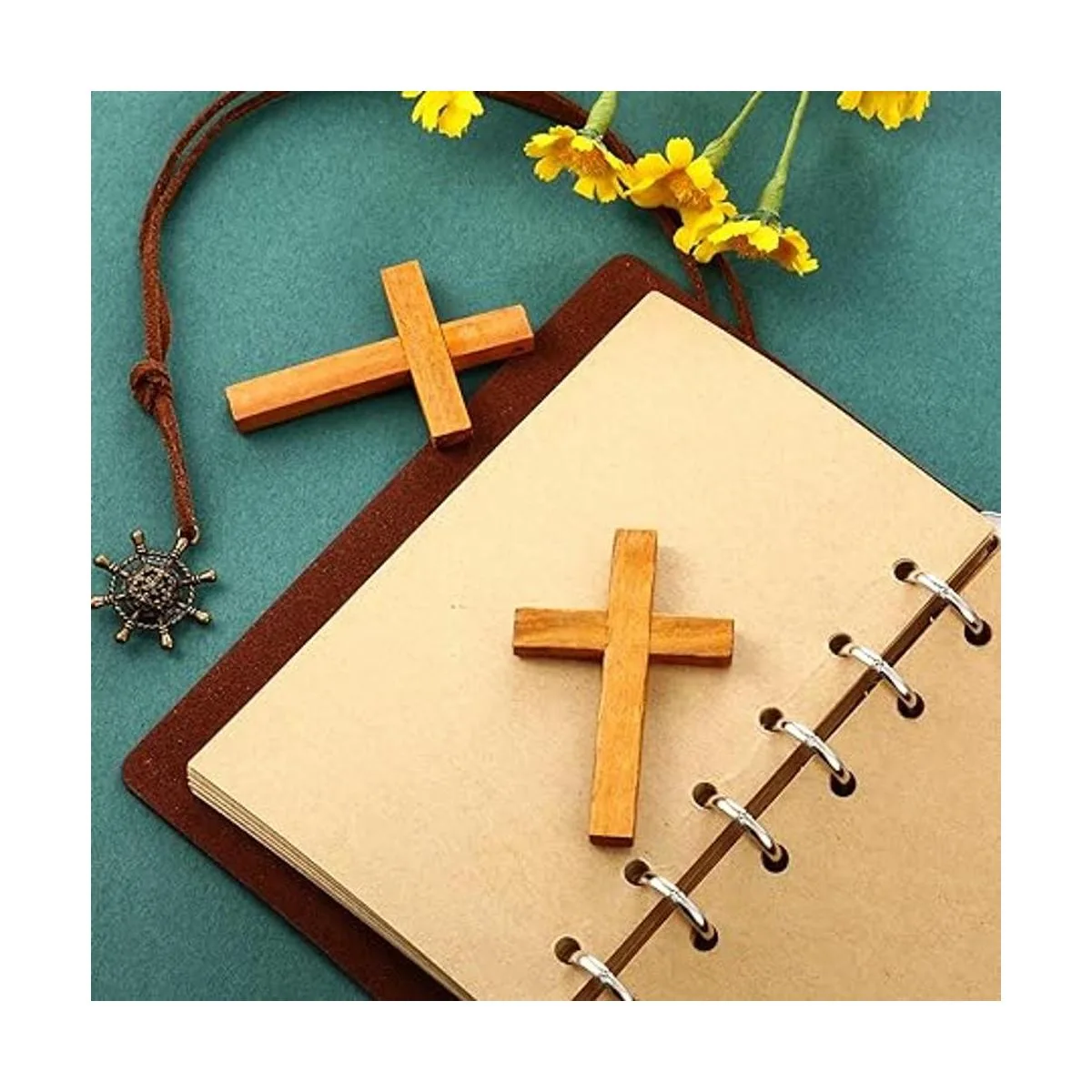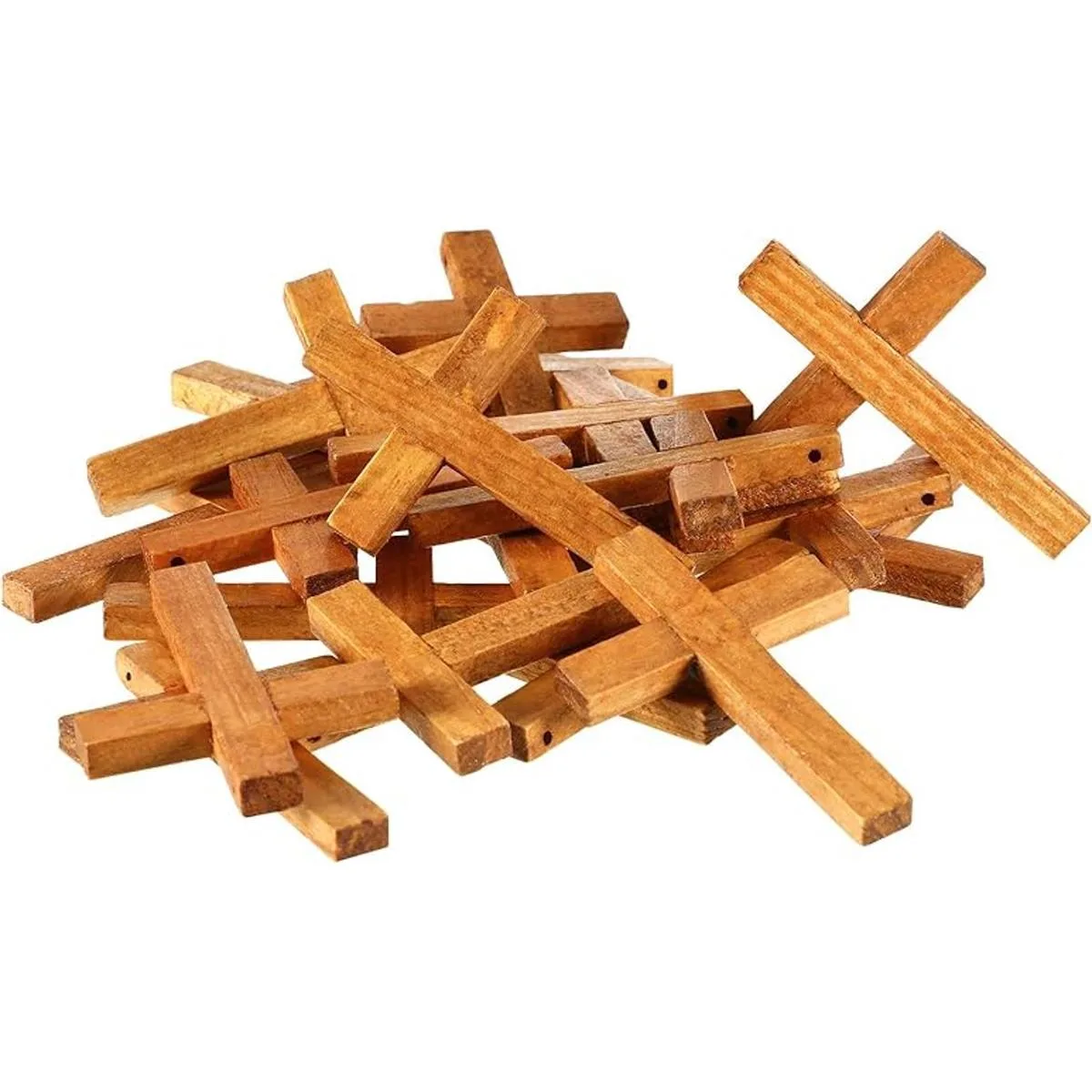 24 colgantes de cruz de madera natural para manualidades, joyería, Madera