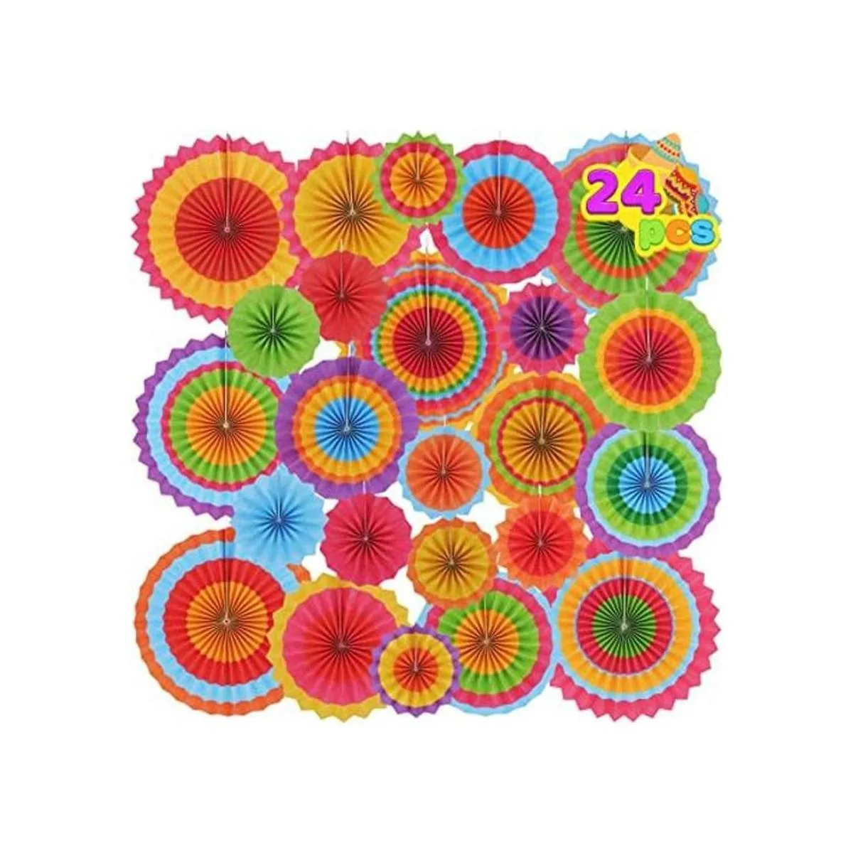 24 coloridos ventiladores de papel colgantes con ruedas redondas para decoración de fiestas de fiestas, accesorios de fotos de eventos Luau, festivales mexicanos del Cinco De Mayo, carnavales, eventos de martes de tacos.