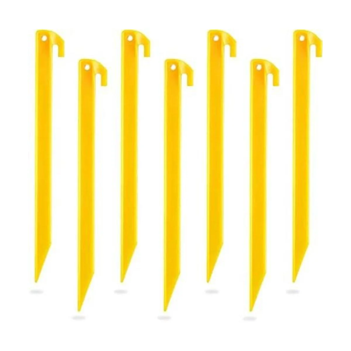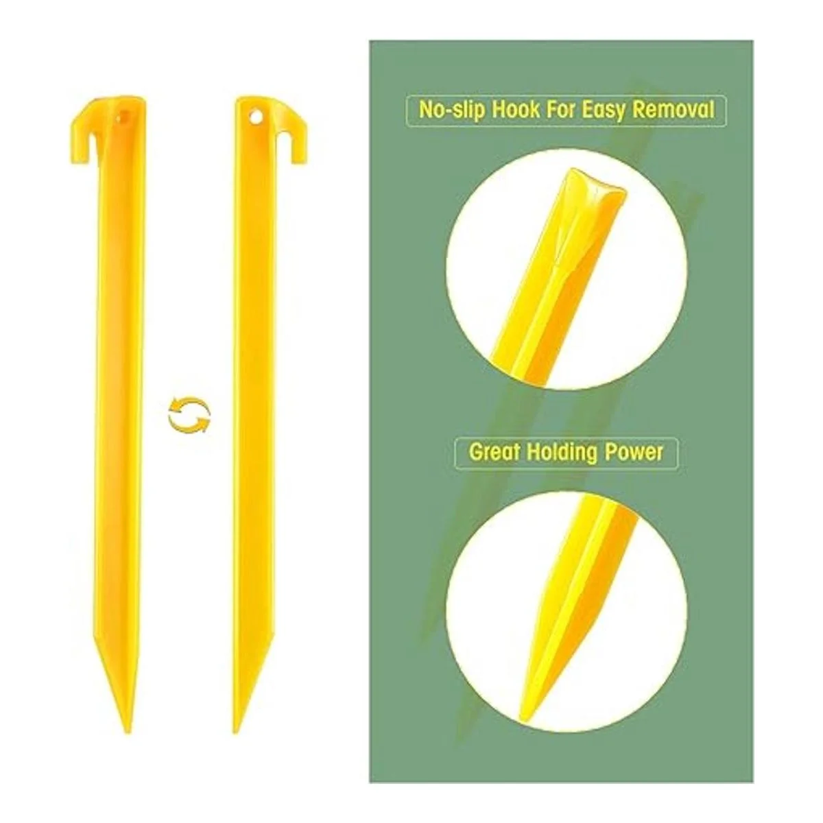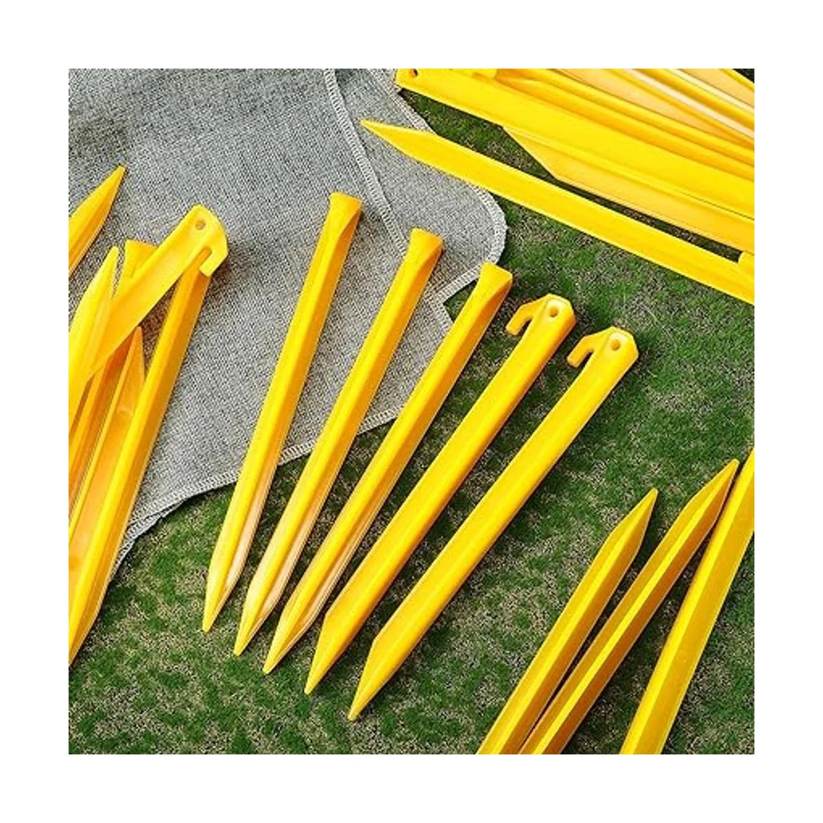Material duradero: las estacas para tienda de campaña están hechas de plástico de calidad, que es duradero y firme, no se rompe fácilmente, puede resistir al óxido, práctico y útil, se puede aplicar durante mucho tiempo