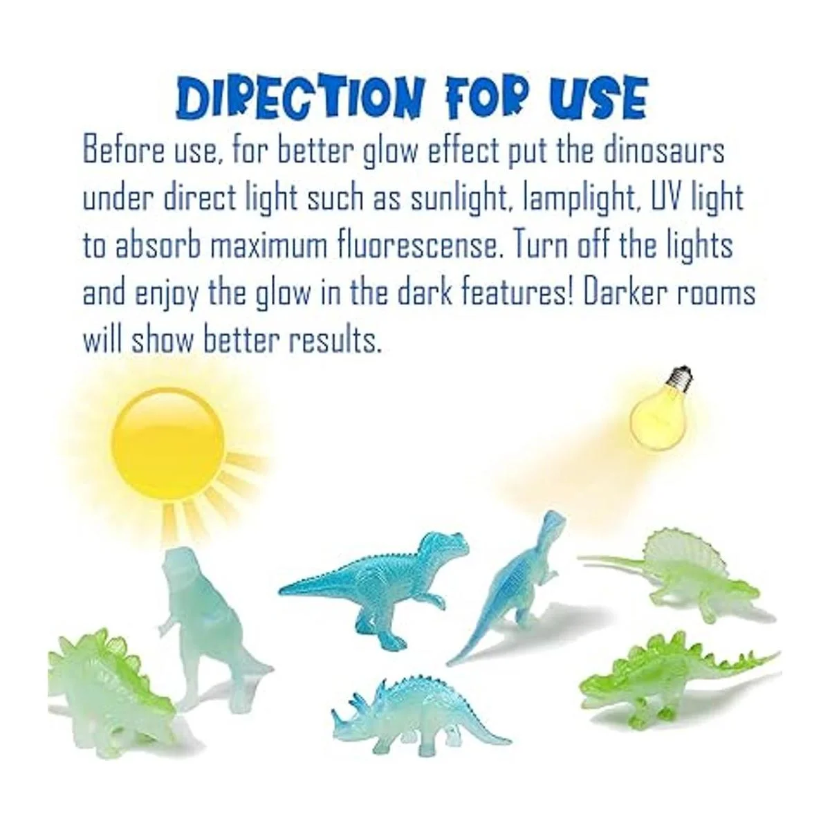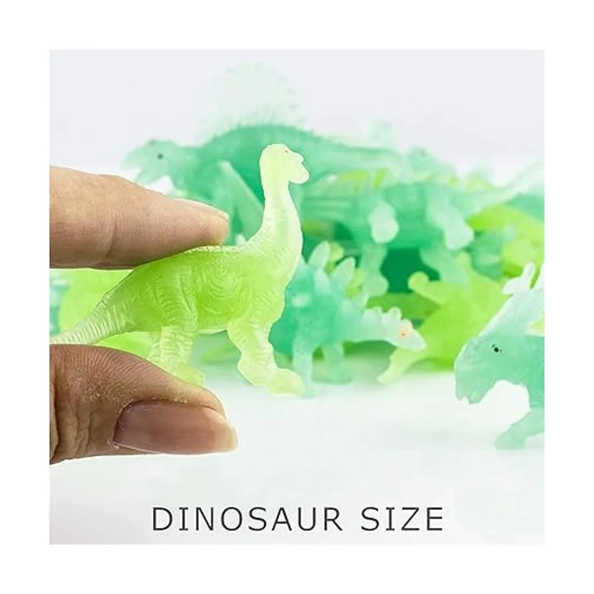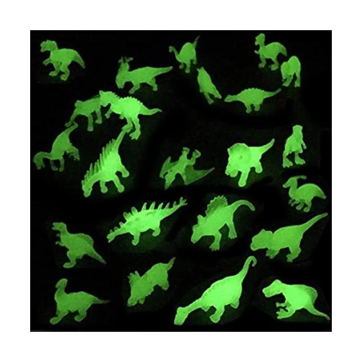24 figuras de dinosaurio de plástico en miniatura que brillan en la oscuridad, mini juguetes de figuras jurásicas, surtidas, suministros de recuerdos de fiesta luminosos y brillantes