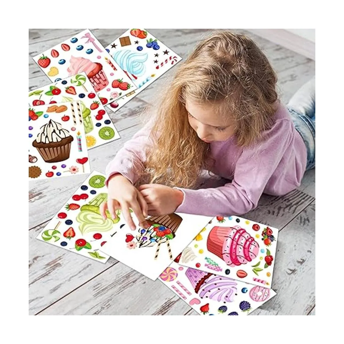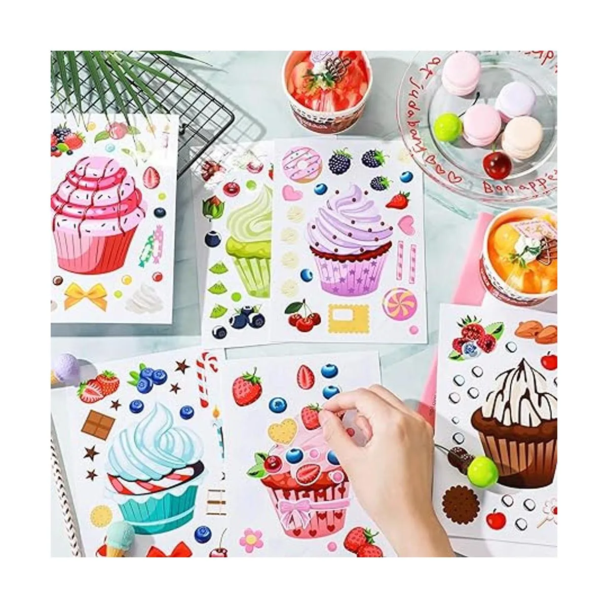 24 hojas de calcomanías de golosinas y dulces que hacen que tus propias calcomanías coloridas hagan tus propias calcomanías de magdalenas, calcomanías de galletas para mezclar y combinar calcomanías de postre, calcomanías de decoración de pasteles, recuerdos de fiesta para niños