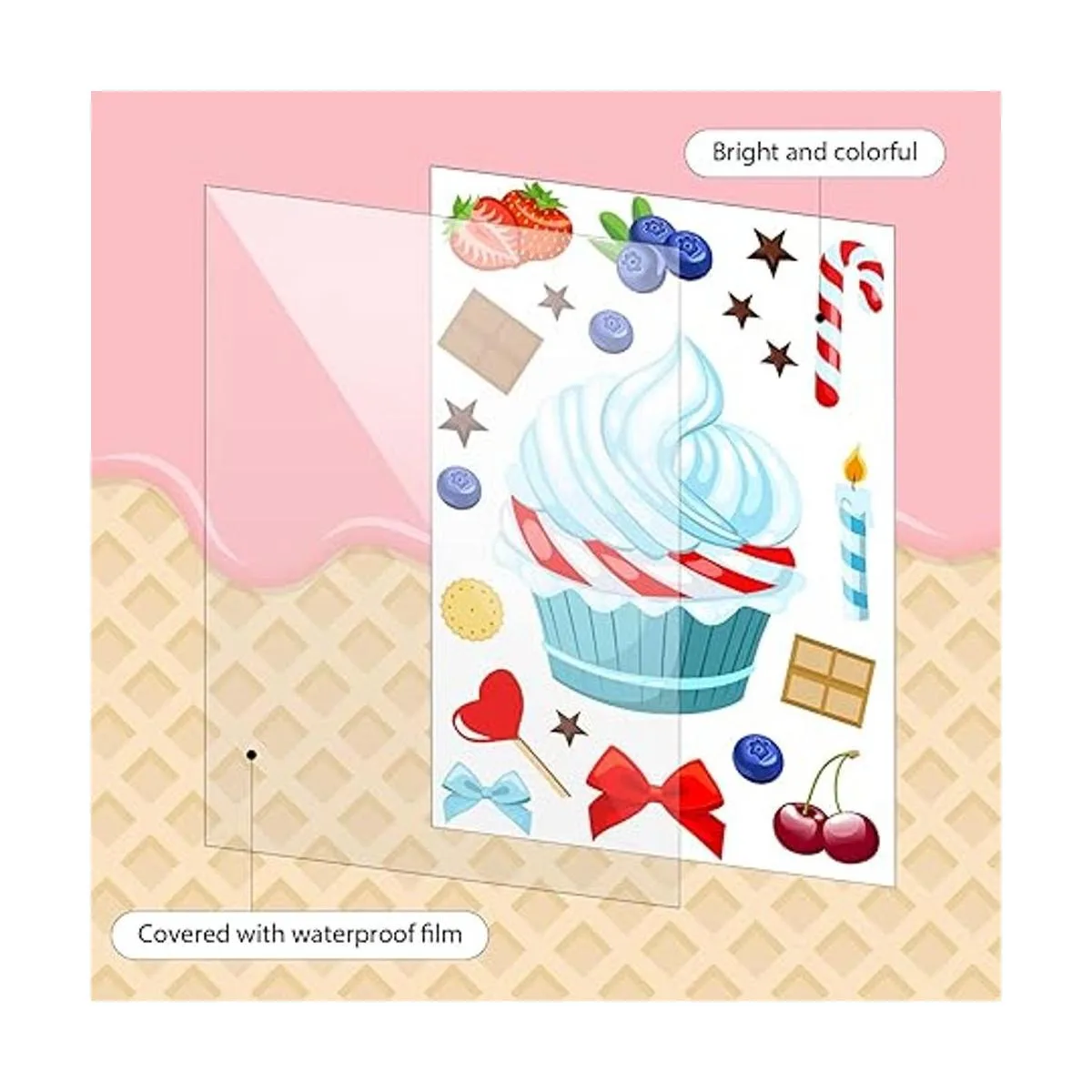 Fácil de jugar: hacer tu propia calcomanía para tartas es muy conveniente y rápido; solo tienes que quitar la pequeña calcomanía que te guste y pegarla en la superficie del cupcake, por lo que puedes crear una hermosa decoración de postre; también puedes pegar el producto acabado directamente en la ventana, pared, refrigerador y espejo