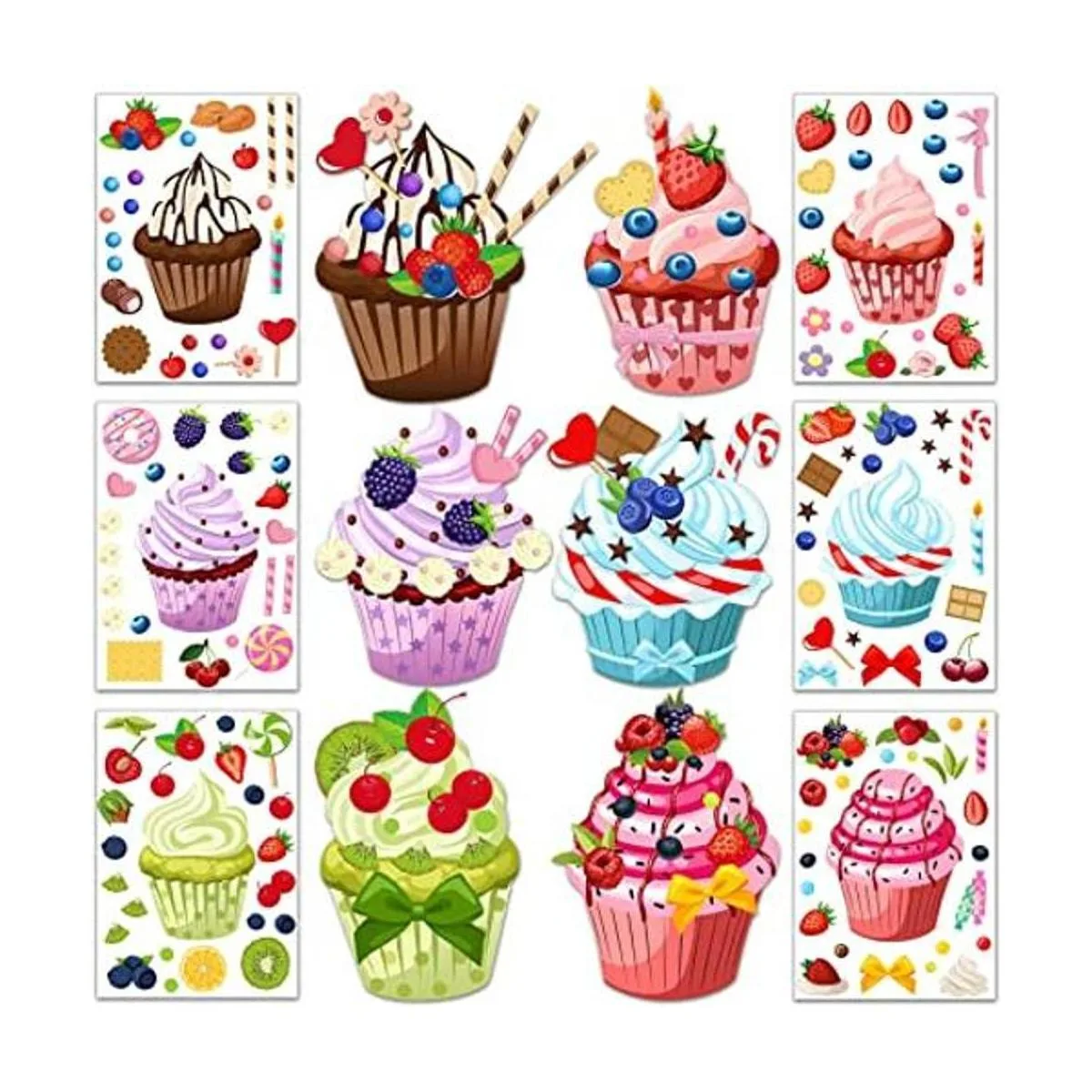 Elección ideal: estas calcomanías para cupcakes se pueden aplicar como regalos de fiesta, decoraciones de sala de hornear, recompensas de aula, accesorios de juego y más; pueden estimular la creatividad y la imaginación de los niños, traiéndolos mucha diversión