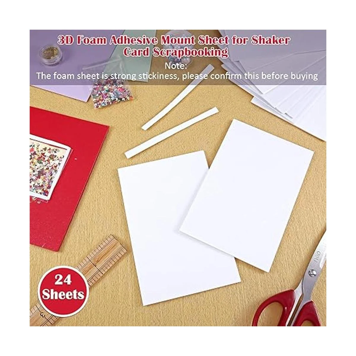 Cantidad suficiente: recibirás 24 hojas de espuma adhesiva de doble cara en total, cantidad suficiente que soporta tu uso diario y requisito de reemplazo, y también puedes compartirlas con tus amigos u otras personas que las necesiten.