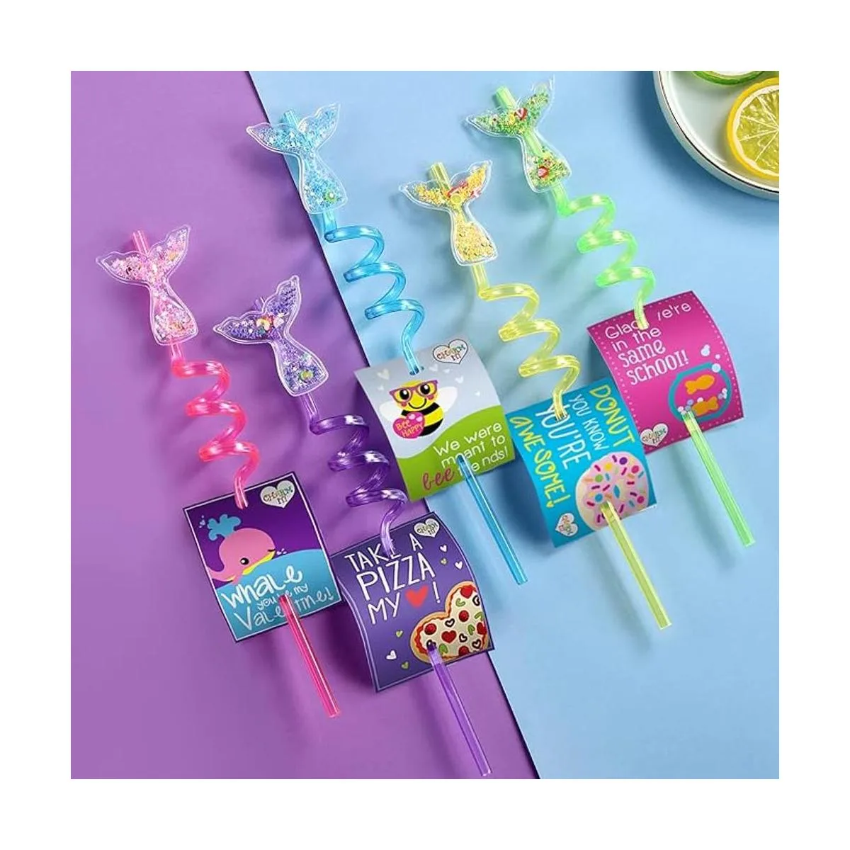 Juguete de bebida de bricolaje: todos los patrones de fiesta de sirena se pueden ajustar según sea necesario, sin pegamento ni herramientas necesarias, simplemente desliza hacia arriba y hacia abajo para ajustar el patrón de dibujos animados. Estas pajitas de plástico se pueden utilizar tanto en bebidas frías como en bebidas calientes.