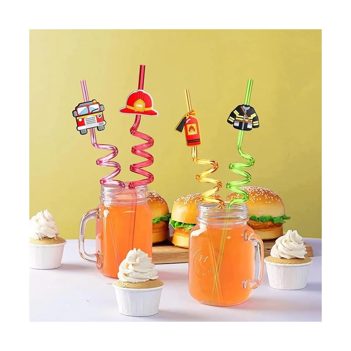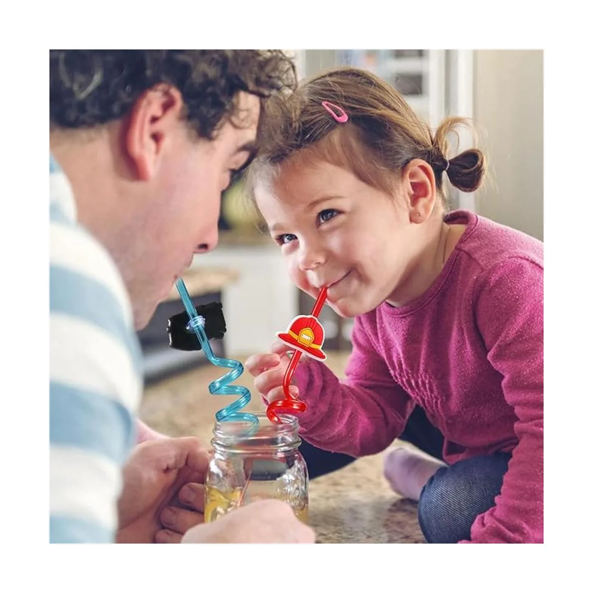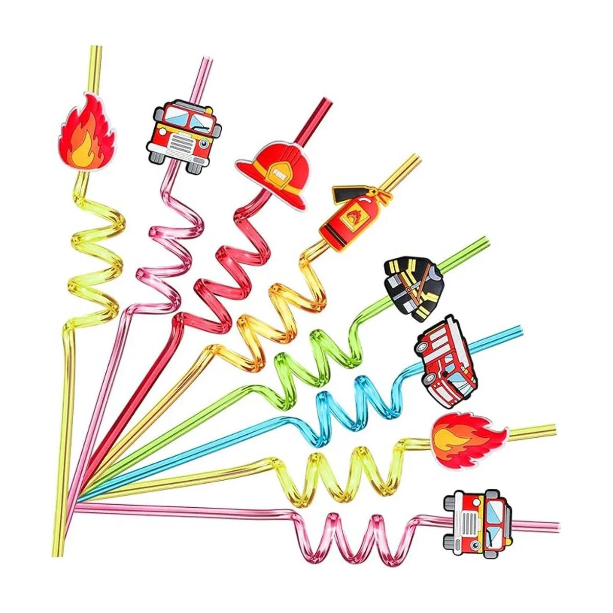 Juguete para bebidas de bricolaje: todos los patrones de fiesta de camiones de bomberos se pueden ajustar según sea necesario, sin pegamento ni herramientas necesarias, simplemente desliza hacia arriba y hacia abajo para ajustar el patrón de dibujos animados. Estas pajitas de plástico se pueden utilizar tanto en bebidas frías como en bebidas calientes.