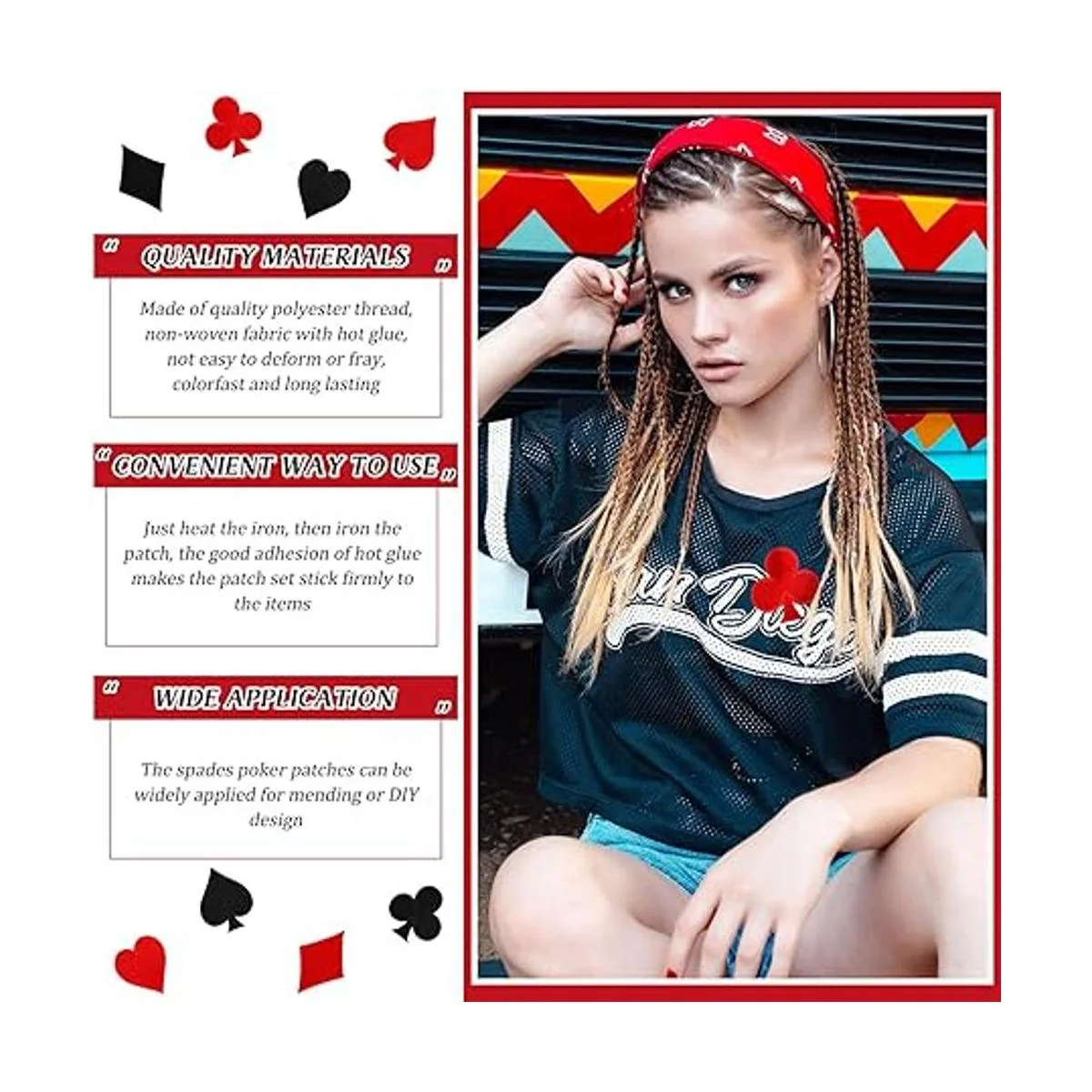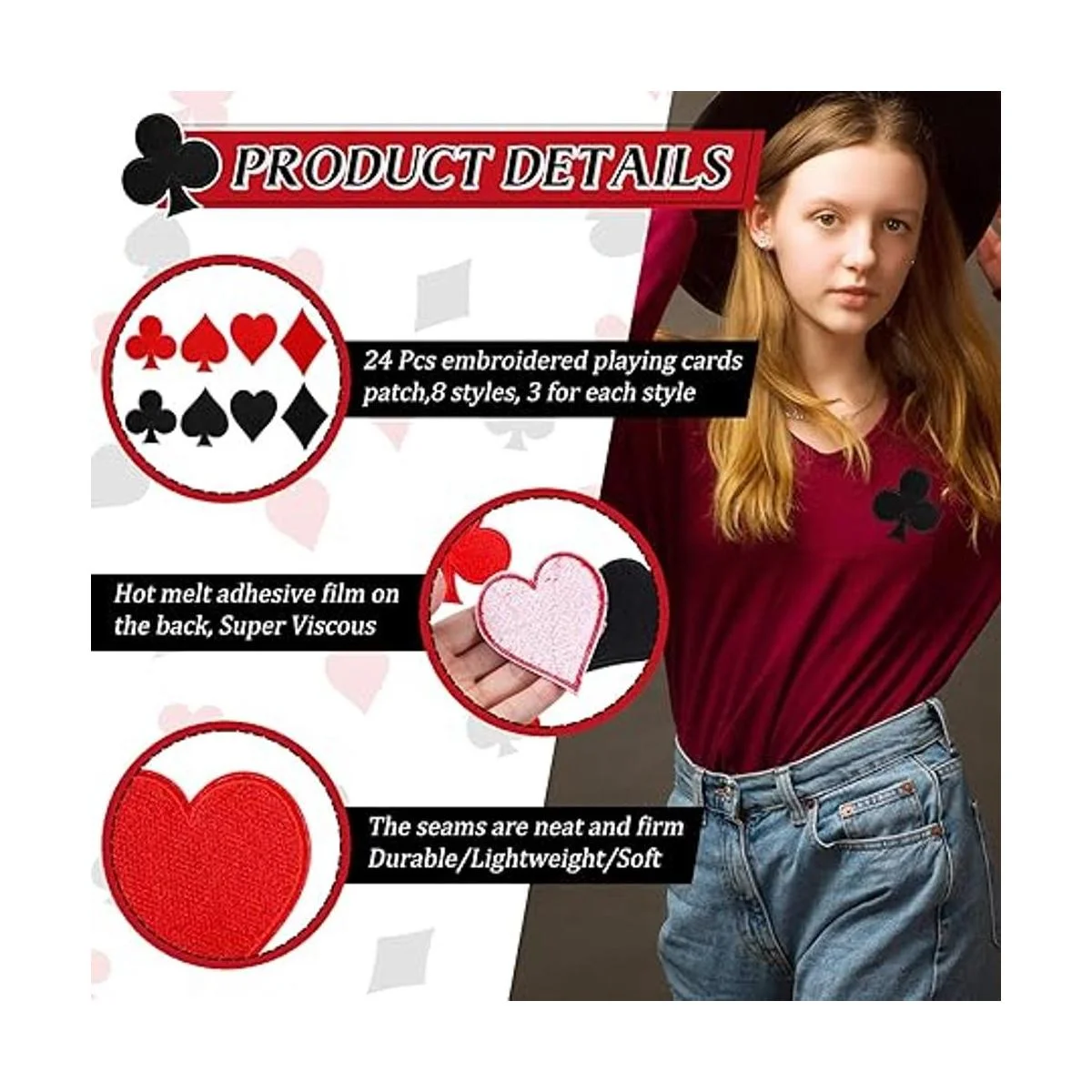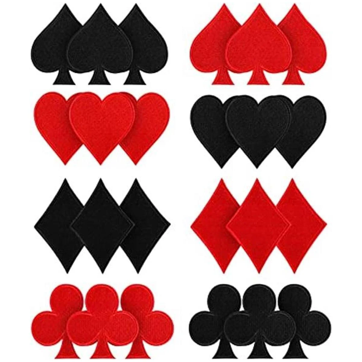 24 parches para jugar con plancha, color rojo y negro, con diseño de corazón, para planchar en cartas, con diamantes y espadas, parche de cartas de póquer, Las Vegas, apliques bordados para jeans, sombreros, bolsos, chaquetas, camisas, ropa de bricolaje