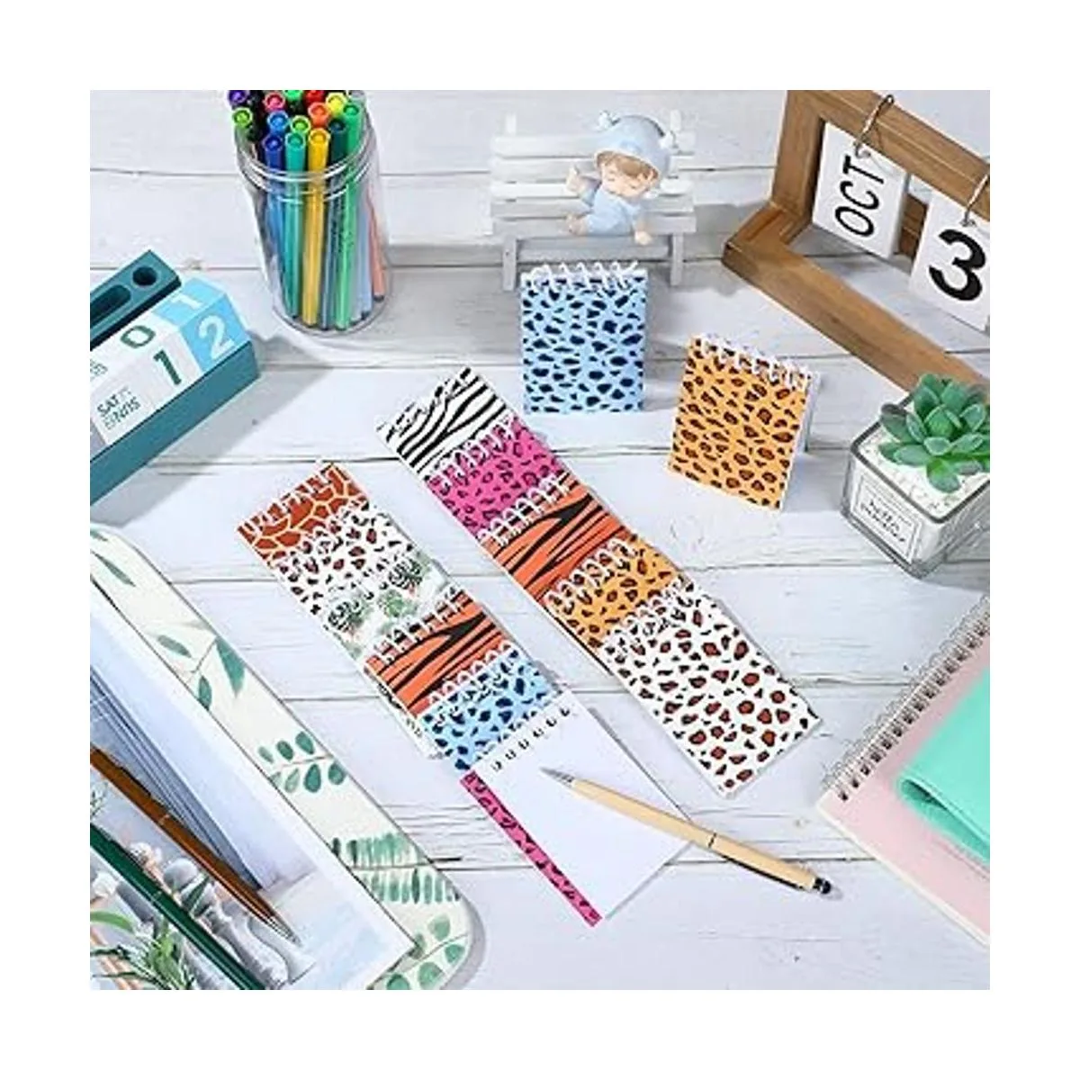 Amplias aplicaciones: los mini blocs de notas en espiral están diseñados con patrones de animales salvajes, adecuados para fiestas de cumpleaños temáticas de animales, baby shower, actividades escolares y así sucesivamente; también se pueden aplicar como recompensa de actividad escolar para estudiantes, regalos de fiesta, relleno de calcetín de Navidad y mucho más