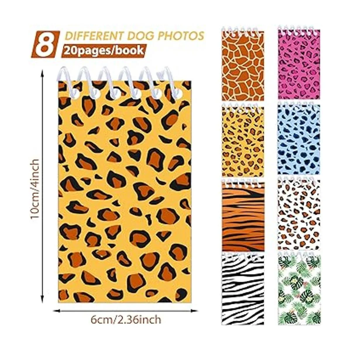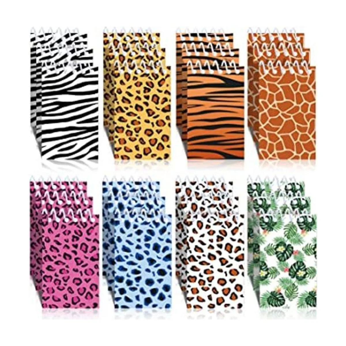 24 piezas de animales salvajes mini bloc de notas pequeños en espiral, cuadernos de bolsillo de selva, animales de leopardo, guepardo, recuerdos de fiesta, suministros para niños, adultos, fiesta de cumpleaños, baby shower, 8 estilos