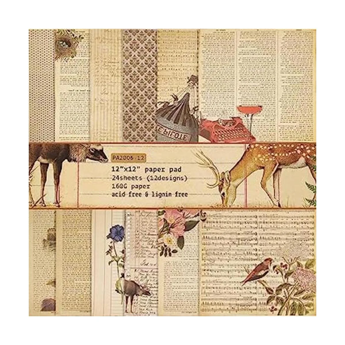 24 piezas de bloc de papel vintage para álbumes de recortes, paquete de papel de origami de 12 x 12 pulgadas, papel decorativo para manualidades, álbum de fotos
