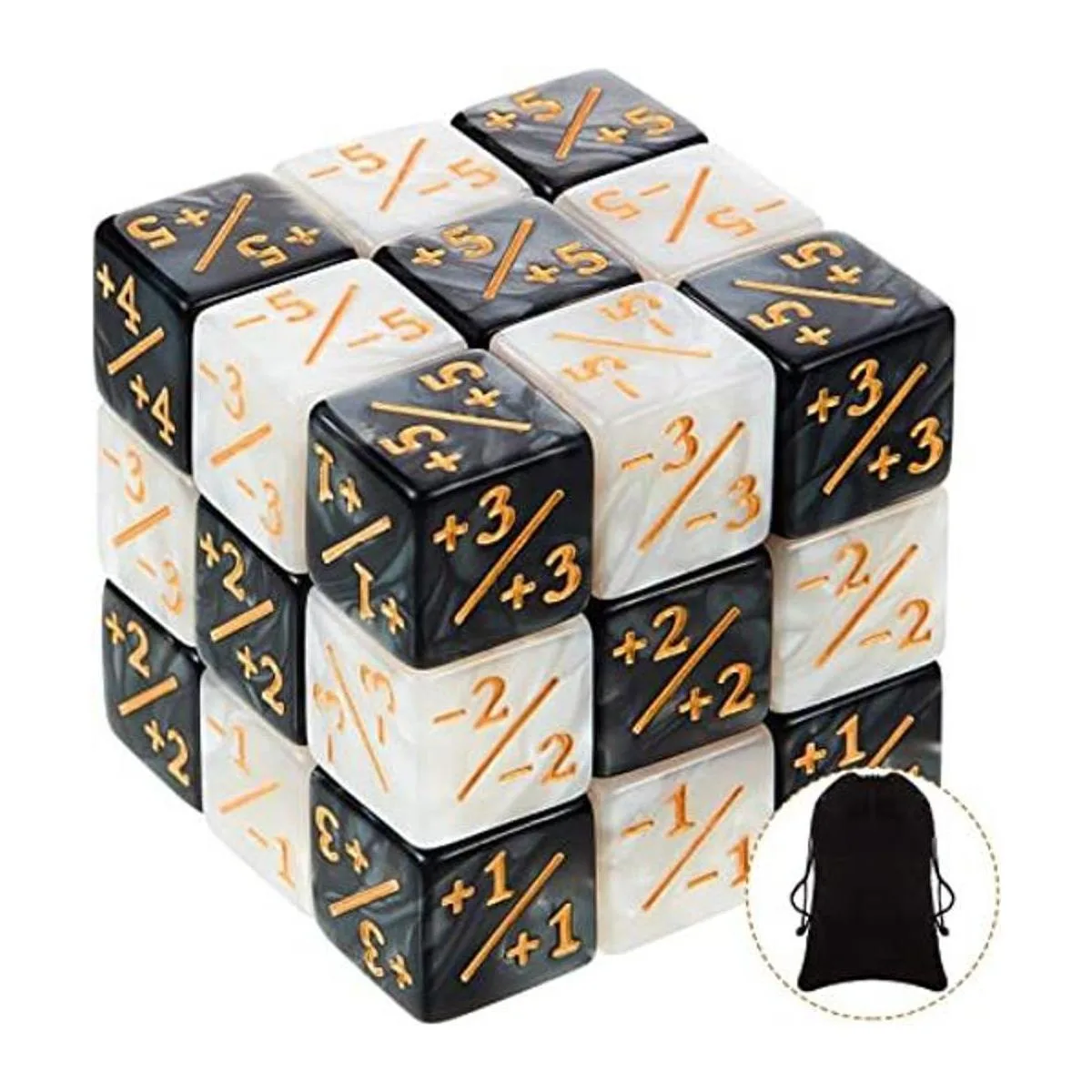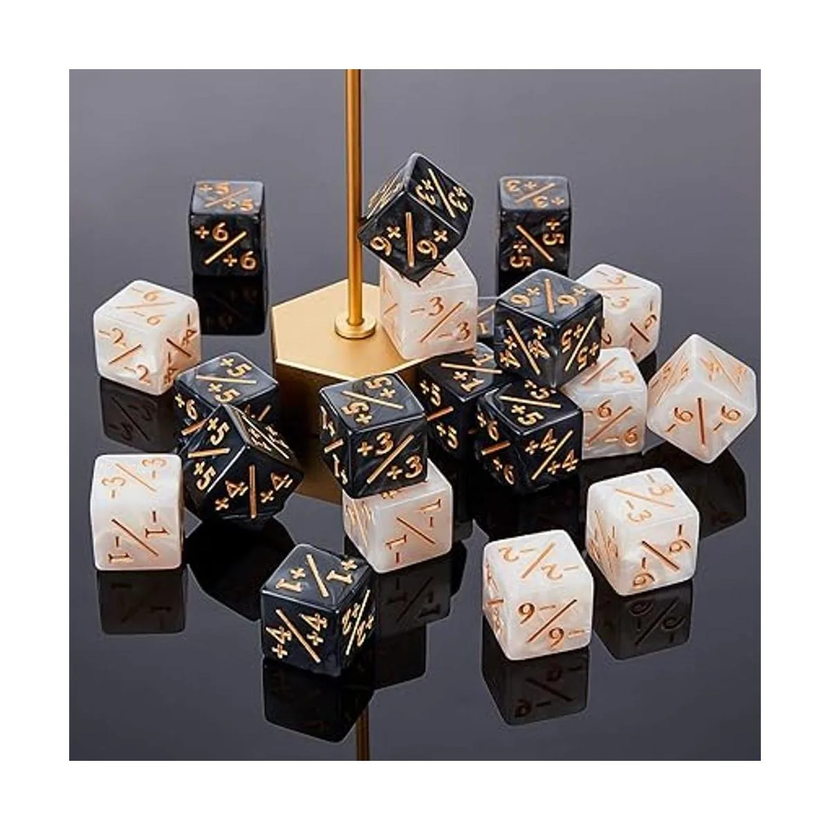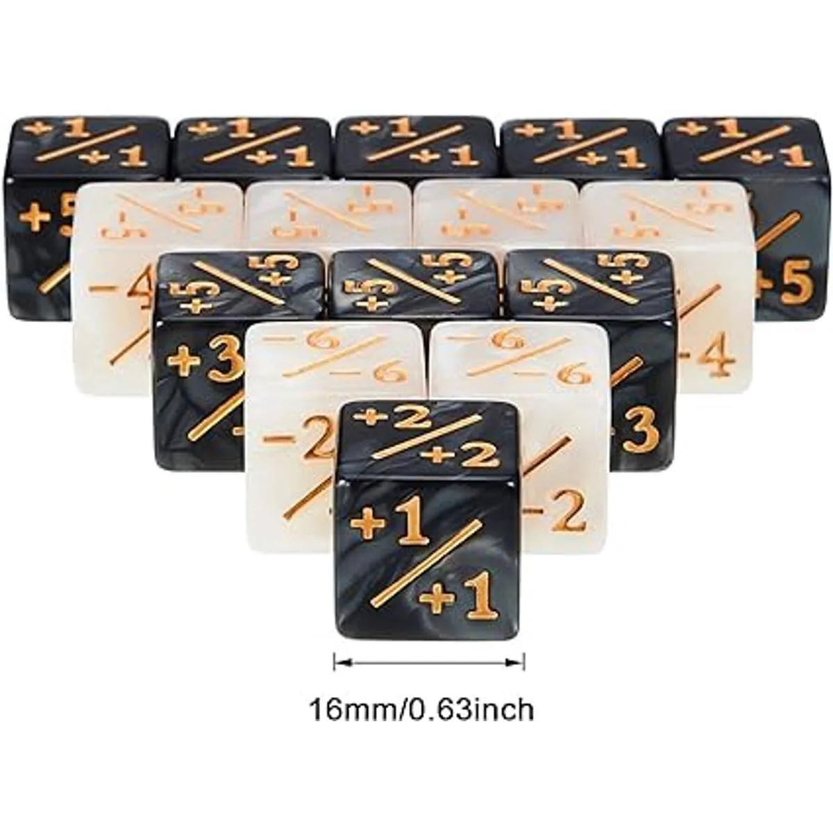 Cantidad adecuada: recibirás 24 contadores de dados y 1 bolsa de almacenamiento negra, incluyendo 12 contadores de dados positivos de mármol negro y 12 contadores de dados negativos de mármol blanco, cantidad suficiente para tu juego o reemplazo