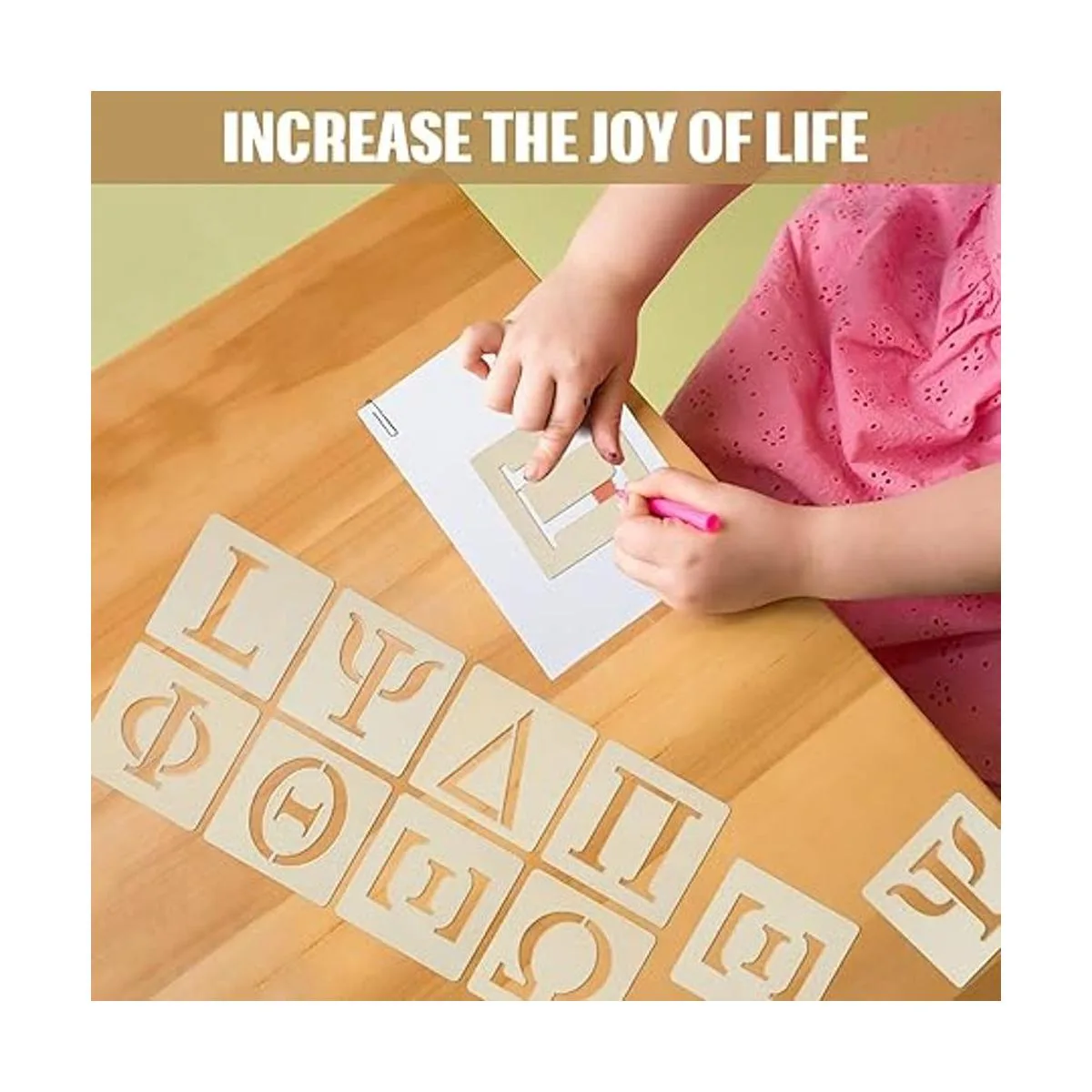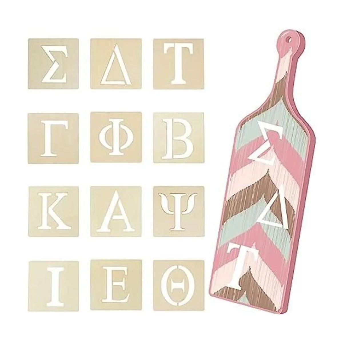 24 plantillas de letras griegas de madera para letras griegas, letras griegas, reutilizables, letras griegas, letrero de madera para manualidades, decoración de pared